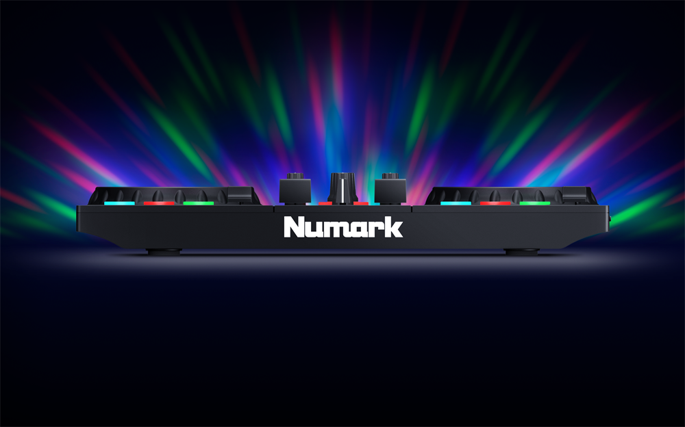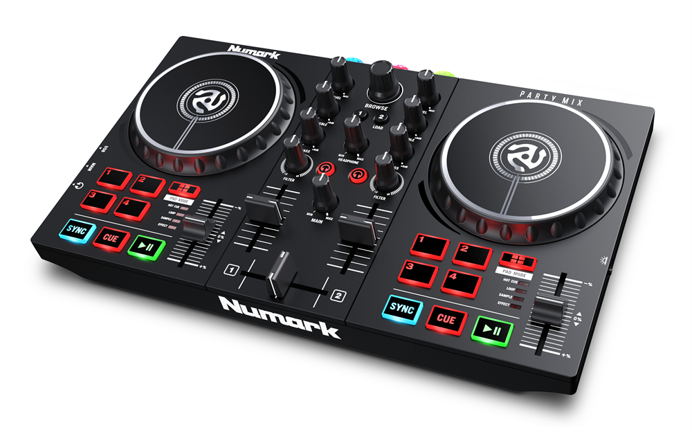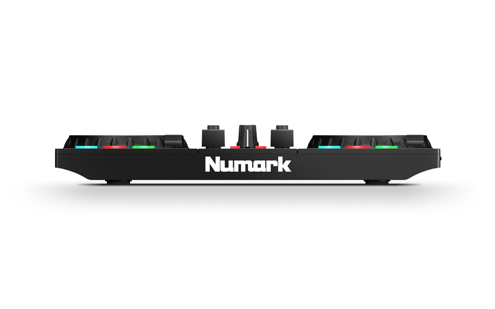 Four performance pads on each deck allow quick access to cue points, loops, effects or samples. Alongside Play and Cue buttons on each