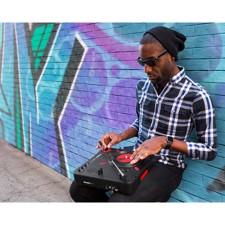 Connect your phone or any audio source to play a background beat through the 1/8" stereo input and scratch along to the beat. Increase the volume with the gain control and play it loud and strong on the built-in speaker. You can also connect PT01 Scratch to other equipment via the RCA stereo outputs or use the headphone output for private listening.