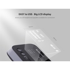 BDT-5.0 er en kompakt 3-i-1 Bluetooth-audioadapter, der gør dit hjemmeunderholdning trådløs. Når den bruges som en Bluetooth-sender, kan den streame lyden fra dit TV til Bluetooth-hovedtelefoner eller højttalere. Når den bruges som en Bluetooth-modtager, kan den tilsluttes dit hjemme-lydsystem til trådløs musikafspilning fra din Bluetooth-aktiverede smartphone. Adapteren understøtter dobbeltlink og kan parre og tilslutte 2 Bluetooth-enheder samtidigt. Så du kan bruge to hovedtelefoner eller højttalere på samme tid. Den praktiske bypass-tilstand gør det muligt at bruge kabelforbundne højttalere uden at skulle genforbinde lydkabler hver gang. Opsætningen er meget simpel. Enheden parres inden for få sekunder. Den 1,8 tommer LC-display viser tydeligt navnene på dine Bluetooth-enheder og den aktuelle driftstilstand for adapteren. Derudover kan du nemt justere lydstyrken, skifte enheder og styre afspilning/pause via forskellige knapper og drejeknappen. Den nyeste Bluetooth 5.0 teknologi giver mere stabile, hurtigere trådløse forbindelser med lavt strømforbrug. Rækkevidden er op til 14 m i transmitter-tilstand og 20-30 m i receiver-tilstand. BDT-5.0 understøtter både digital-optisk Toslink og analog RCA og 3,5 mm jack-forbindelser, hvilket gør den kompatibel med de fleste TV, AV-modtagere, soundbars, stereoanlæg, hovedtelefoner, smartphones osv. Alle nødvendige lydforbindelseskabler er inkluderet i pakken. Enhver USB-strømkilde kan bruges som strømforsyning.