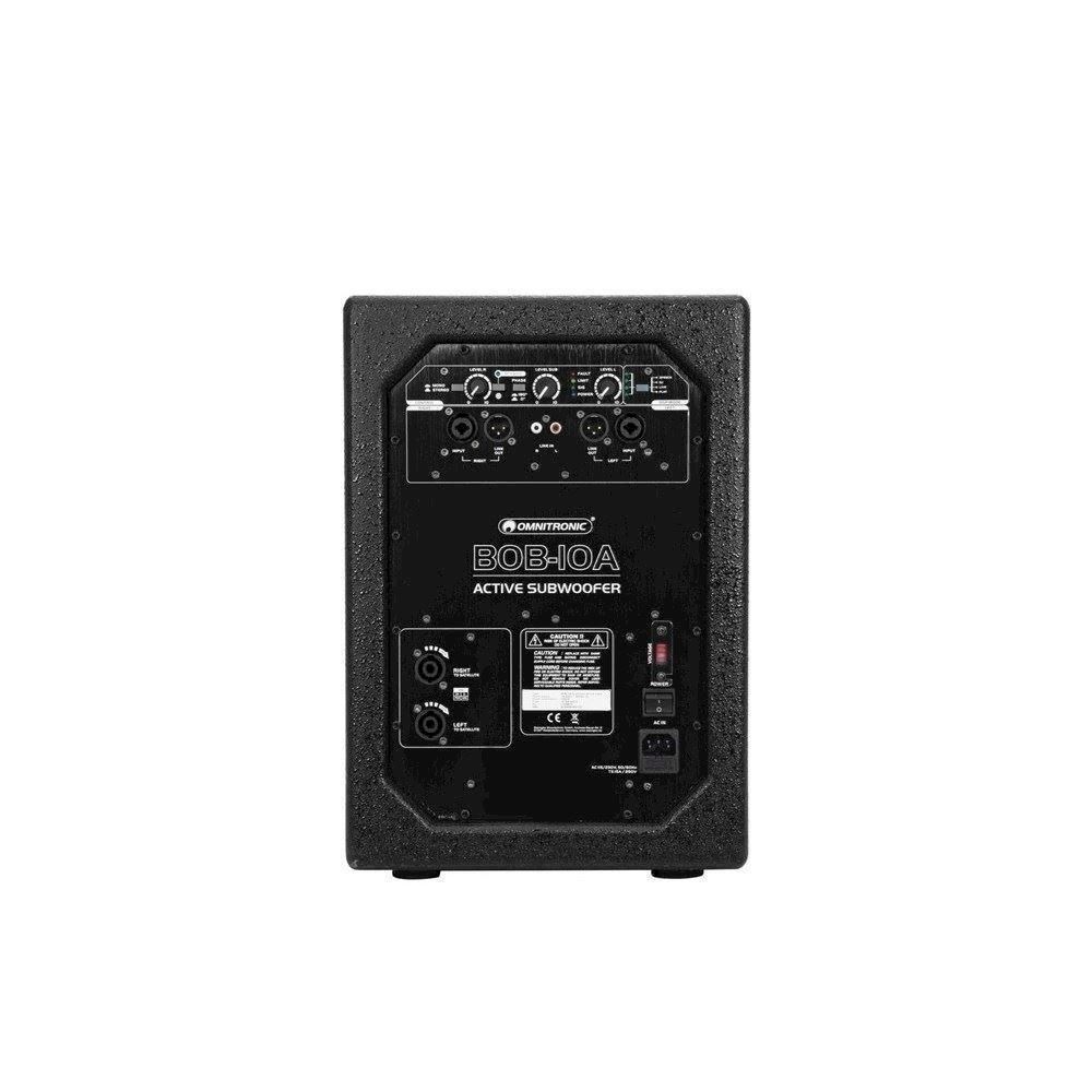 Her er du: Disconetto » LYD » Højttalere » Aktive Højttalere » Aktiv Subwoofer OMNITRONIC BOB-10A Subwoofer active black På lager På lager, 3-5 hverdage Bedømmelse for OMNITRONIC BOB-10A Subwoofer active blackProduktet er endnu ikke bedømt 4.609,00DKK ved 1 stk. Vis uden moms Trustpilot 10" subwoofer with DSP and Bluetooth for the BOB series 10" subwoofer with DSP and Bluetooth for the BOB series10" bassreflex subwoofer with DSP and 600 watts RMS powerFlexibly extendable with BOB-4 satellites for 2.1, 4.1 and 8.1 configurationsDSP-controlled class D amplifier (300 W + 2 x 300 W)Integrated Bluetooth audio streaming4 EQ presets with indicatorsSignal limiter and crossoverSignal inputs via combo jacks (XLR/6.3 mm jack) and RCAParallel XLR outputs for linking further BOB systems or active systemsSeparate volume controls for subwoofer and satellites L/RStereo/mono selectionPhase reversal switchFault, limit, signal and power indicatorsBuilt-in protection circuits: soft start, short-circuit, limiter, overcurrent, overheatTwo M20 metal flanges for mounting satellite speakersMDF enclosure with scratch-resistant lacquer surface and steel grilleBuilt-in handles and low weight for ease of transportStackable via recesses when set up horizontallyDelivery includes two speaker cablesFor mobile live and DJ applications and installation in bars, stores, conference rooms and home theaters Power supply:115/230 V AC, 50/60 HzPower consumption:1060 WAmplifier power:LF 300 W RMS + HF 2 x 300 W RMSLF speaker: 25 cm (10") with 50 mm voice coilFrequency range:45-250 HzSensitivity:100 dBMaximum SPL: 125 dBSignal input:combination XLR/6.3 mm jack L/R and RCA L/RParallel output:XLR L/RSatellite:Speaker L/RDimensions (L x W x H):470 x 300 x 430 mmWeight:16.5 kgWeight:17,00 kgPower consumption:1060 WSize of woofer:(10") ca. 25 cmFrequency range:45 - 250 HzMaterial:MDF (Medium-density fibreboard) BassNumber of bass-woofer:1 Pc/PcsLength:47 cm BassWidth:30 cm BassHeight:43 cm Bass Varenr.: E-11038870 Vi anbefaler OMNITRONIC BOB Transport Bag for Tripod/Distance Tube DKK 199,00 OMNITRONIC BOB-4 Extension Bracket black 2x DKK 239,00 OMNITRONIC BOB-4 Stand Adaptor black 2x DKK 119,00 OMNITRONIC BOB-4 Top 16 Ohm black 2x DKK 909,00 OMNITRONIC BOB-4 Transport Bag DKK 359,00 OMNITRONIC BOB-82X Subwoofer black DKK 2.309,00 OMNITRONIC Distance Tube Subwoofer/Satellite BOB System DKK 199,00 OMNITRONIC Speaker cable 2x2.5 50m bk durable DKK 819,00 OMNITRONIC Speaker Stand BOB System DKK 279,00 OMNITRONIC BOB-10A Cover DKK 309,00 IEC LOCK IEC Power Cable locking 3x1.0 1m bk DKK 79,00