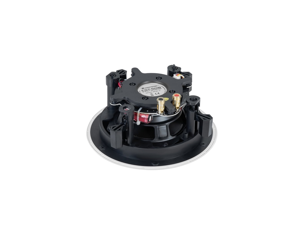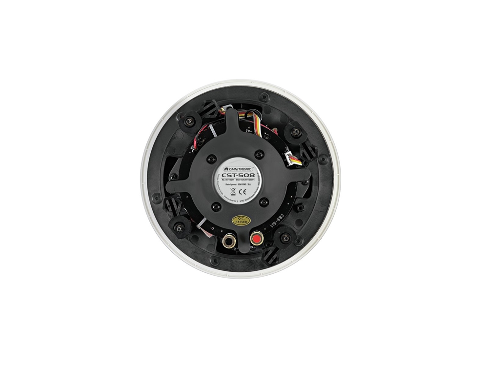 The models of the CST series are frameless in-ceiling speakers with a particularly discreet appearance for installation in hotels, restaurants, bars, foyers, training and conference rooms or shopping centers. The 2-way coaxial systems have a frequency response of up to 20 kHz, balanced sound and excellent speech intelligibility. The tweeter is protected against overload by a PTC and can be tilted 30 degrees to adapt to local conditions, as well as freely rotated by 360°. Secure mounting clamps allow for fast and easy attachment. The front grille is exchangeable.