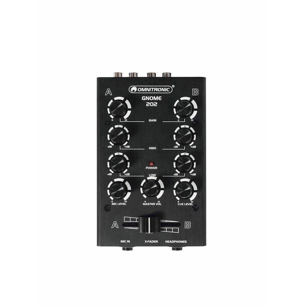 Omnitronic GNOME er en transportabel DJ-mixer i miniature-format med alle de essentielle funktioner til spontan mix af to lydkilder (MP3-afspiller, smartphone, bærbar computer osv.). Udover de to stereo line-indgange er der justerbare mikrofon- og hovedtelefon-forbindelser tilgængelige. DJs vil blive begejstrede for at bruge den jævnt kørende crossfader, 2-bånds equalizer til nem lydjustering og andre kontroller. Den solide håndværk gør mixeren ikke kun visuelt imponerende, men også holdbar.