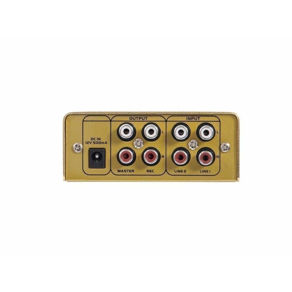 2 stereo kanaler med gain kontrol og 2-bånds EQ, RCA forbindelser