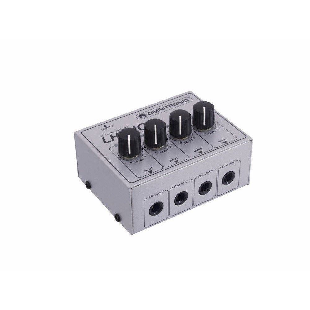 Her er du: Disconetto » LYD » Mixere » Mini mixer OMNITRONIC LH-010 4-Channel Mixer passive På lager På lager, 3-5 hverdage Bedømmelse for OMNITRONIC LH-010 4-Channel Mixer passiveBedømmelse: 3 ud af 5 baseret på 1 stemmer 409,00DKK ved 1 stk. Vis uden moms Trustpilot 4-channel mini mixer, passive 4-channel mini mixer, passiveDistributes the signal of 4 audio sources to 1 output or vice versa4 unbalanced jack inputs (for line or instrument signals) with separate level controls1 unbalanced jack outputNo power supply via power unit or battery necessary Input impedance:47 kohmsOutput impedance:12 kohmsGain:-13 dBS/N ratio:>100 dBDimensions:95 x 73 x 40 mmWeight:0.3 kgFrequency range:20 - 20000 HzHeight:4 cmDepths:7,3 cmWidth:9,5 cm Varenr.: E-10355010 Vi anbefaler Skrivetape - 19mm x 33m. Hvid DKK 41,00