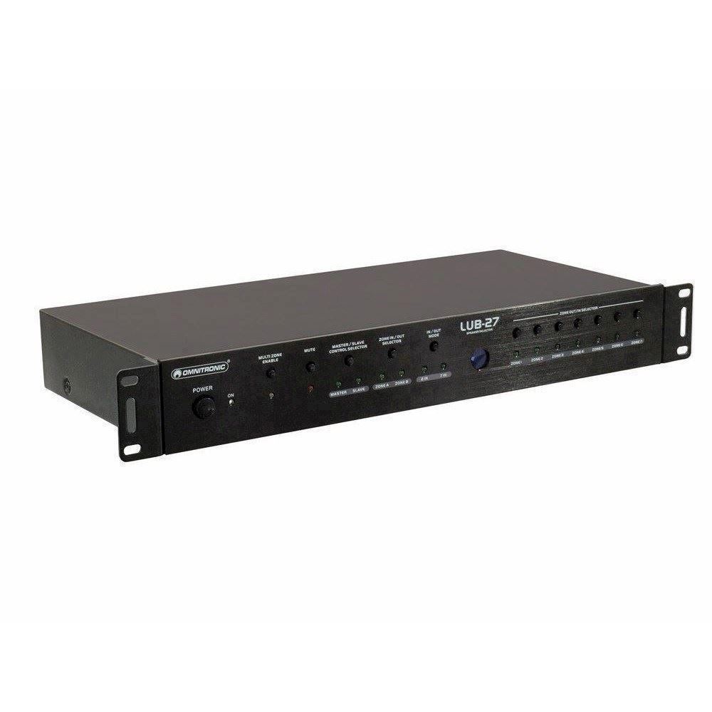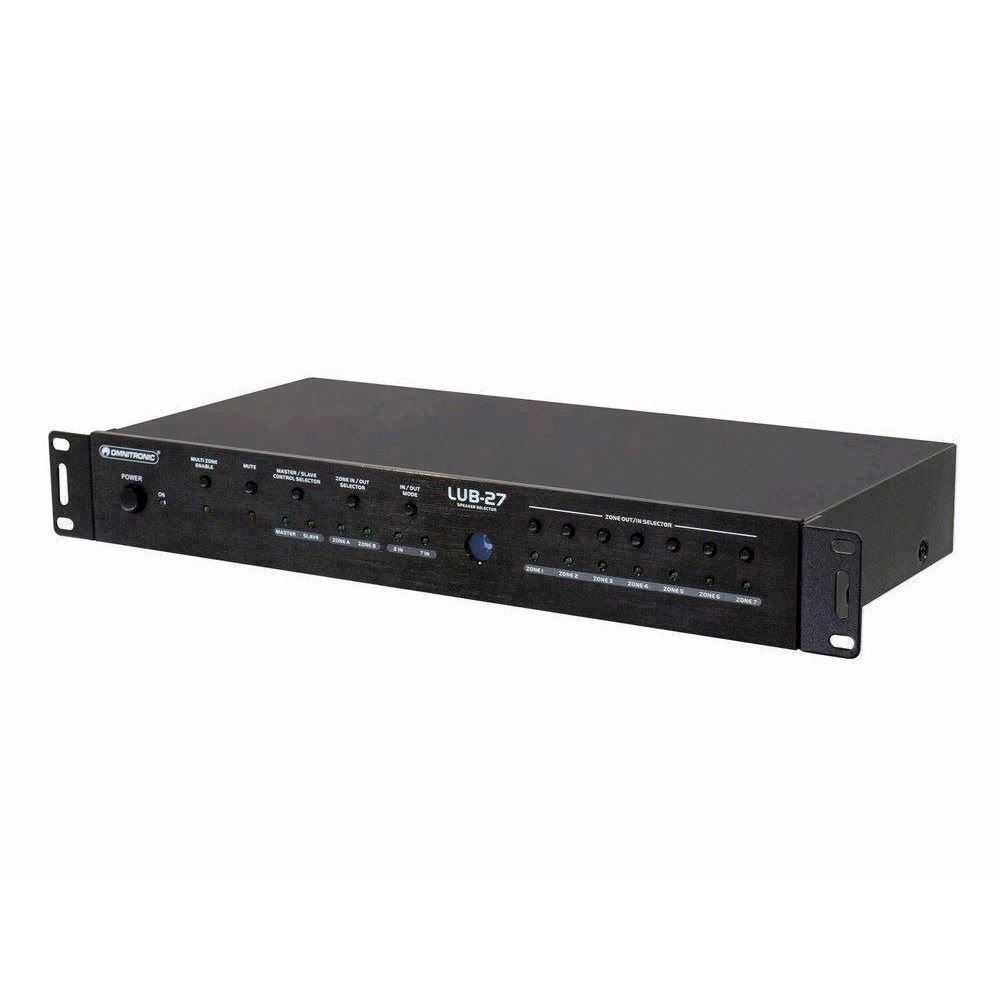 With the Omnitronic LUB-27 loudspeaker switch box, you get a versatile 7-channel switch box for loudspeaker pairs or amplifiers. It is ideal for performance or sound comparison for showrooms or similar demonstration purposes. Demonstrate the advantages of certain loudspeakers or power amplifiers in an impressive and uncomplicated way.