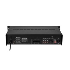 | Connections: | Input: Microphone via 2 x 6.3 mm plug (unbal.) Input: Microphone via 1 x 3-pin XLR Input: line via 3 x stereo RCA 0,3 V Output: line via 1 x stereo RCA 0,3 V Output: speaker via screw terminal |