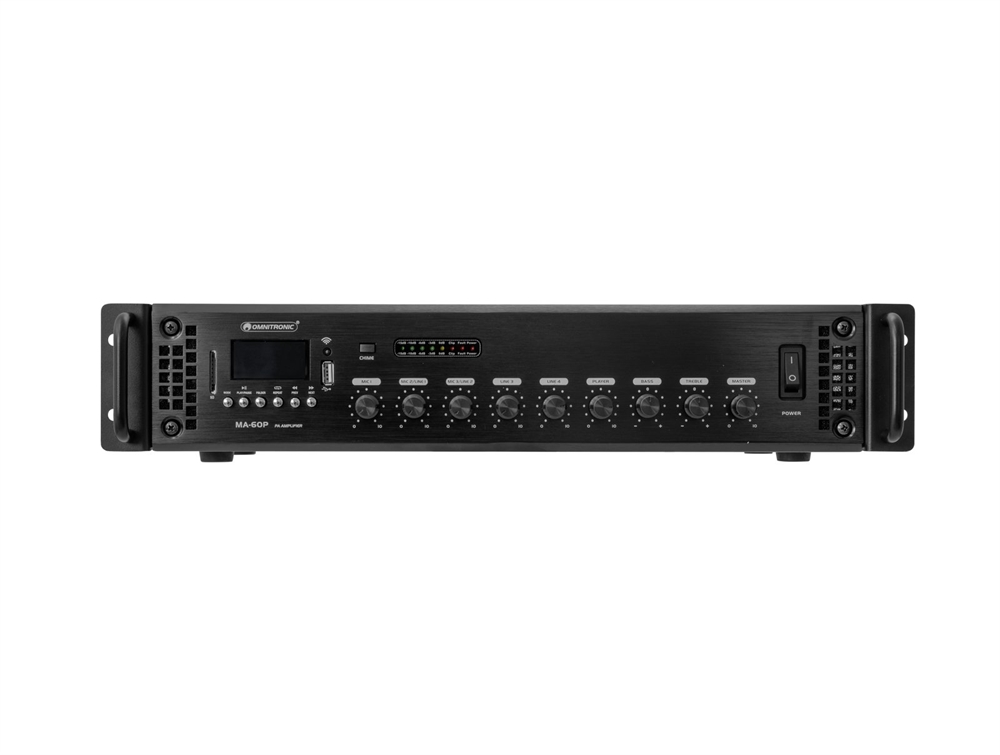 | Connections: | Input: Microphone via 2 x 6.3 mm plug (unbal.) Input: Microphone via 1 x 3-pin XLR Input: line via 3 x stereo RCA 0,3 V Output: line via 1 x stereo RCA 0,3 V Output: speaker via screw terminal |