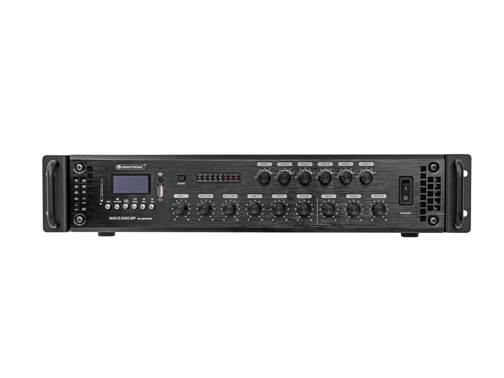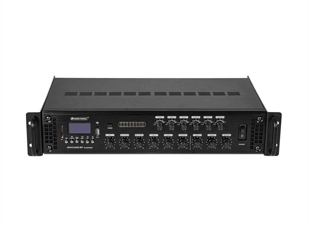 | Connections: | Input: Microphone via 2 x 6.3 mm plug (unbal.) Input: Microphone via 1 x 3-pin XLR Input: line via 3 x stereo RCA 0,3 V Output: line via 1 x stereo RCA 0,3 V Output: speaker via screw terminal |
