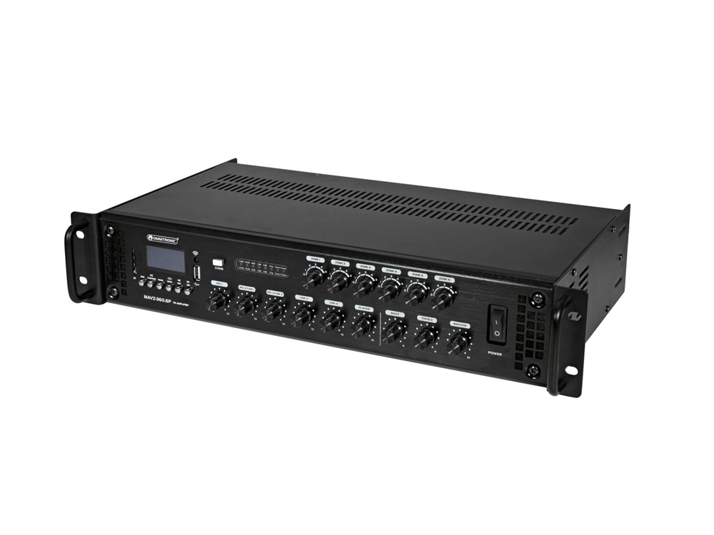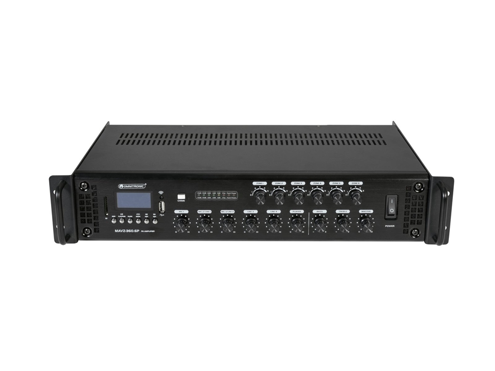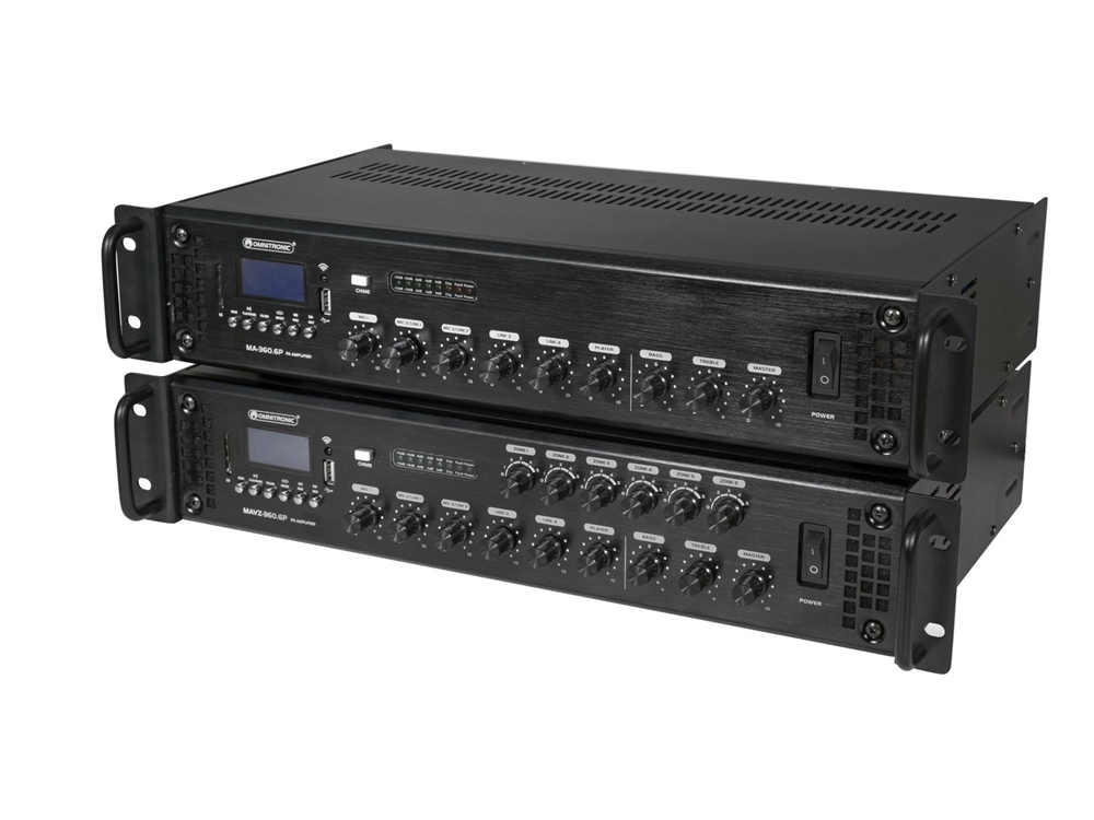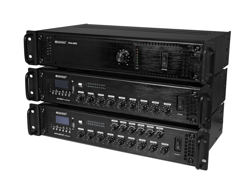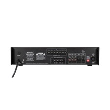 | Connections: | Input: Microphone via 2 x 6.3 mm plug (unbal.) Input: Microphone via 1 x 3-pin XLR Input: line via 3 x stereo RCA 0,3 V Output: line via 1 x stereo RCA 0,3 V Output: speakers via screw terminal |