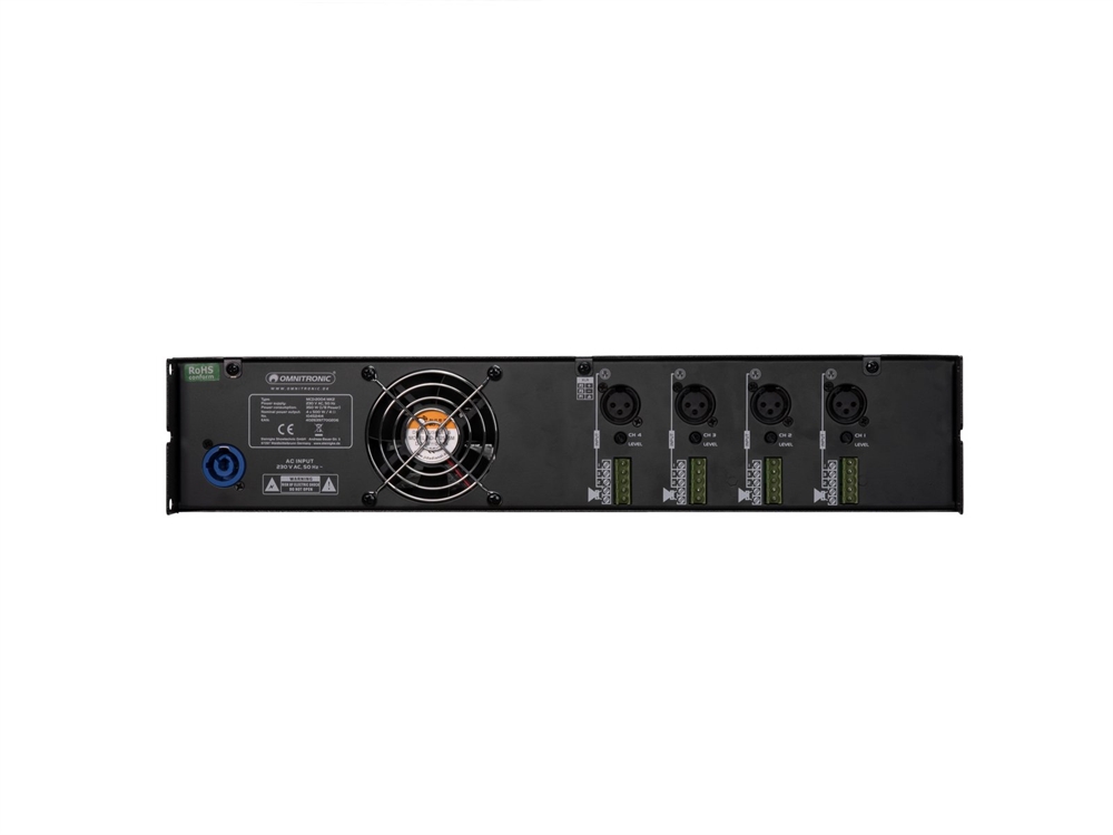 | Connections: | Input: line via 4 x 3-pin XLR Input: line via 4 x screw terminal Output: speakers via 4 x screw terminal |
