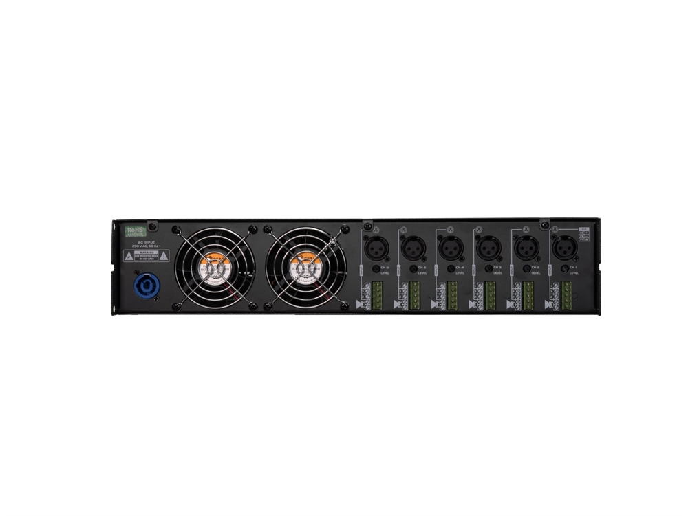 | Connections: | Input: line via 6 x 3-pin XLR Input: line via 6 x screw terminal Link: speakers via 6 x screw terminal |