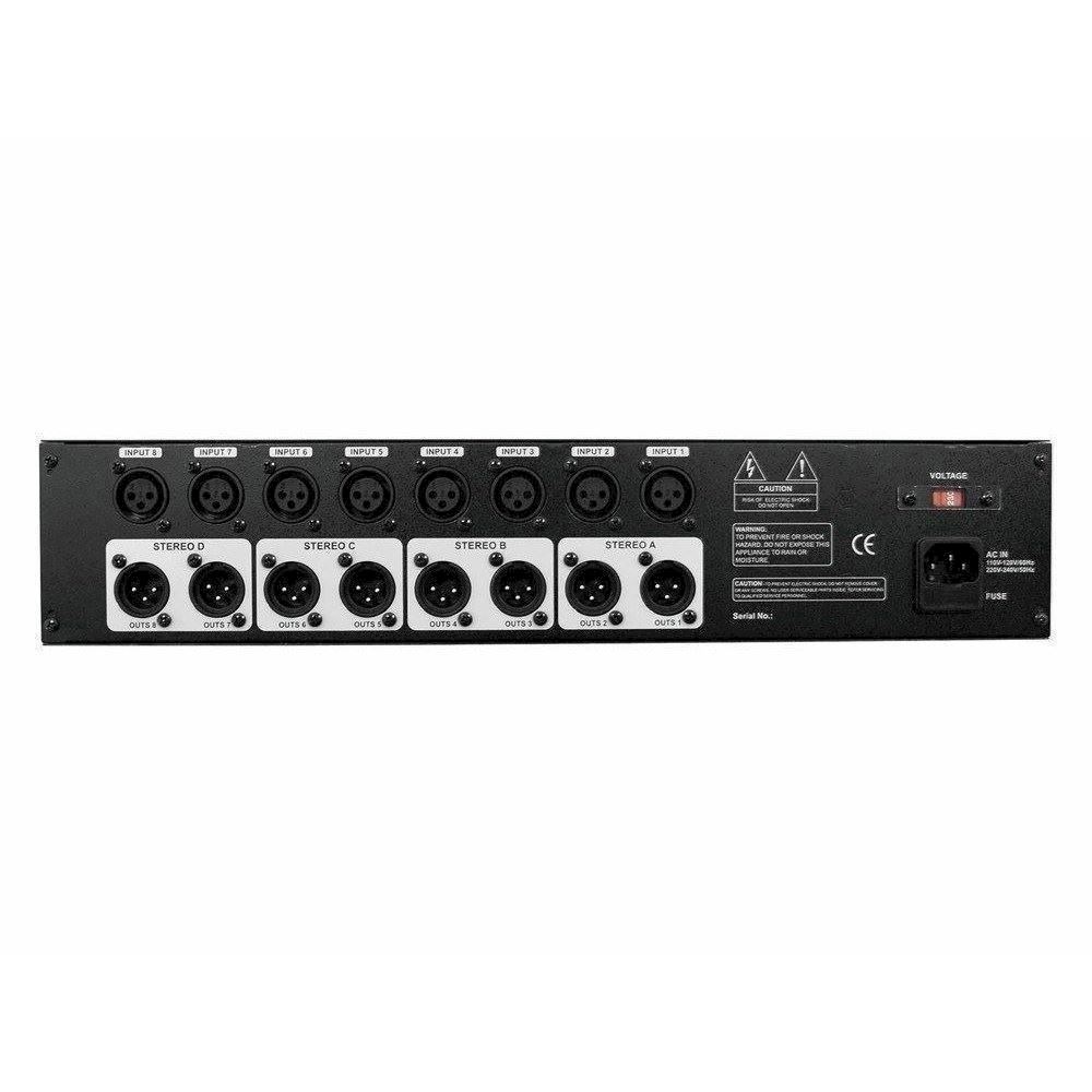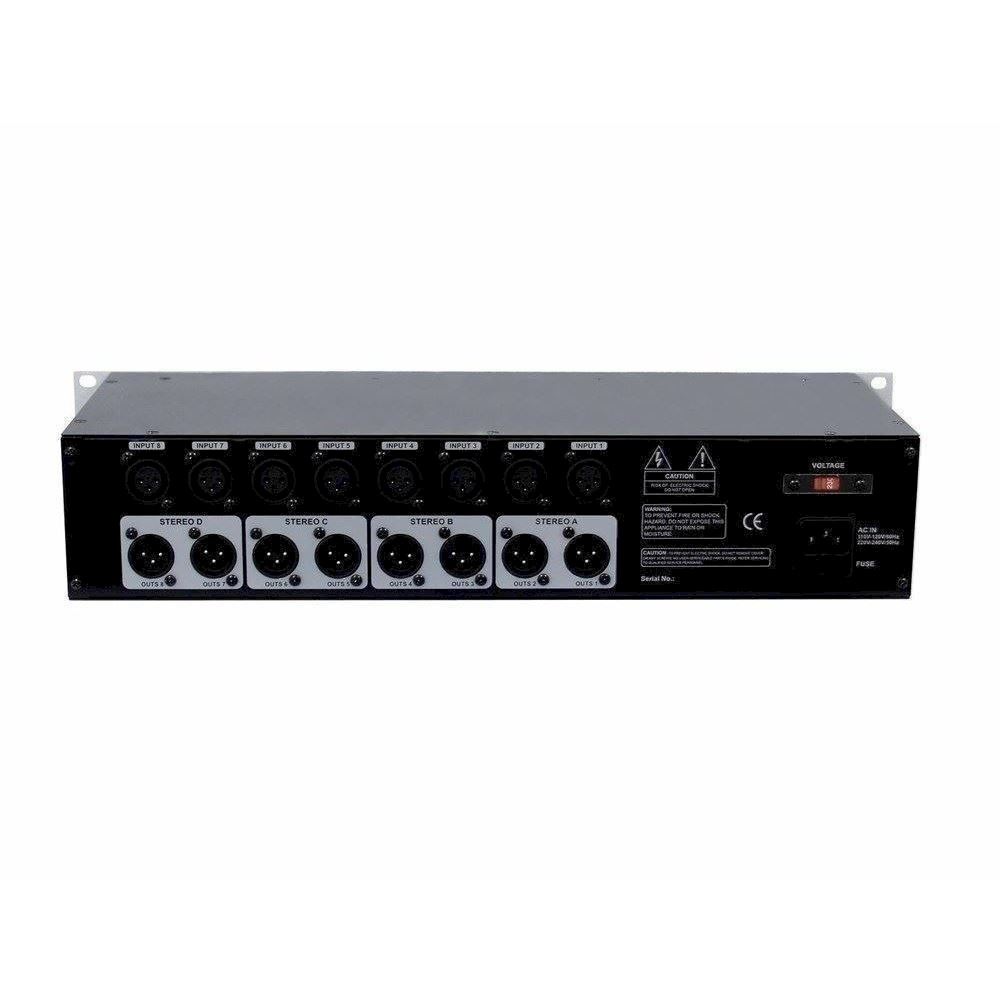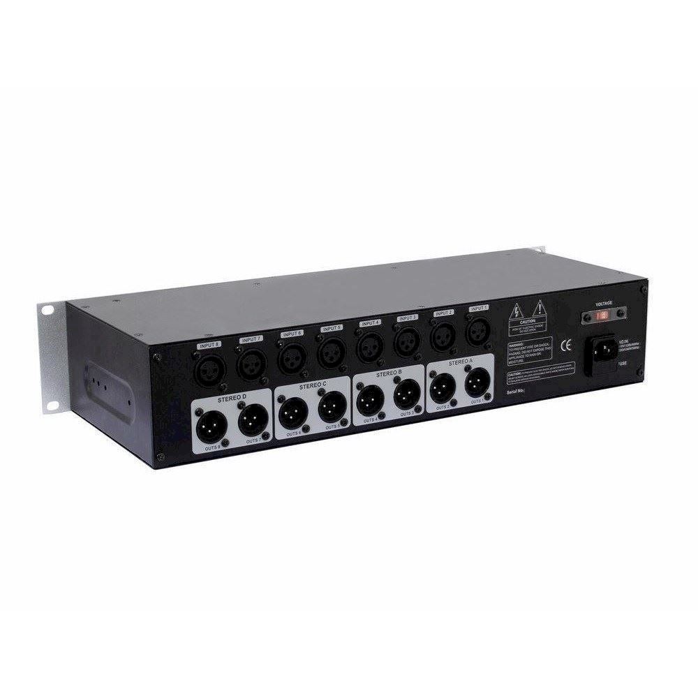 - Division of the 8 outputs into 4 groups; each with separate level and pan control per channel