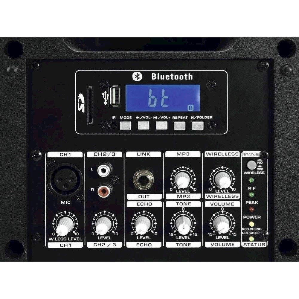 Portable 6.5" PA with UHF receiver unit, audio player, Bluetooth and 40 W RMS
