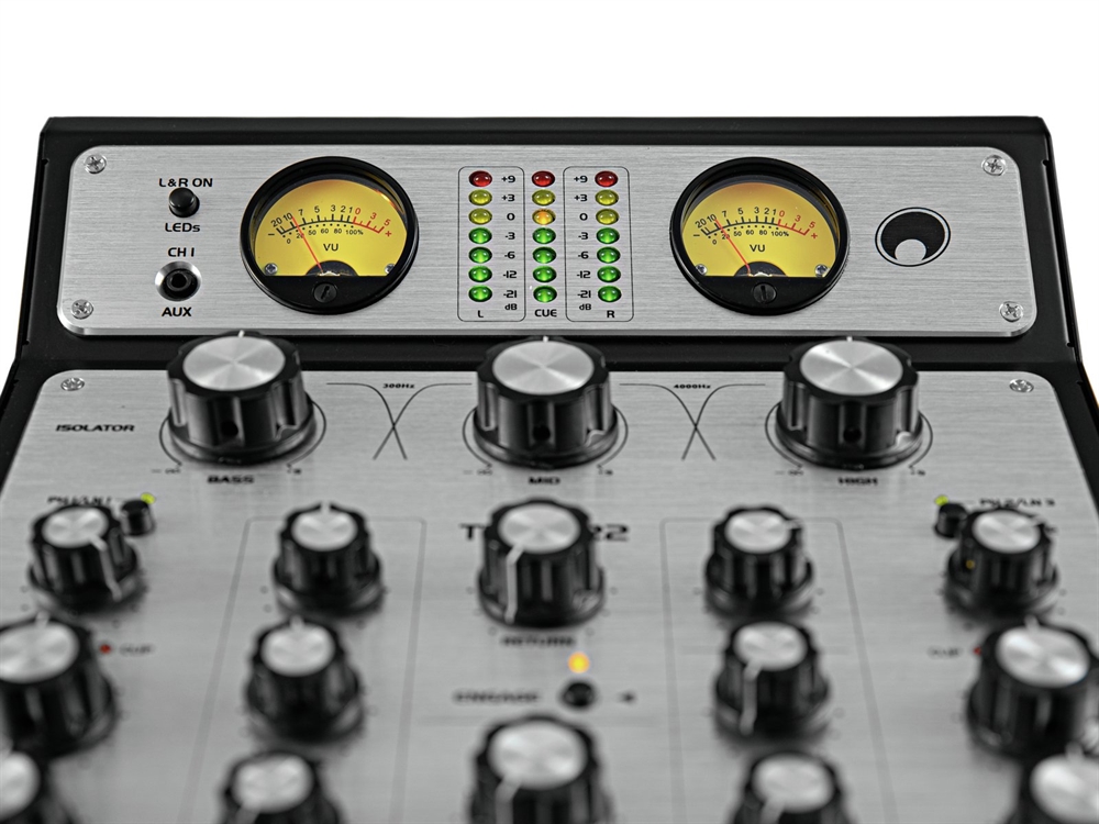 Booth-udgang: 1 x stereo via XLR eller RCA, kanalkontrol via drejeknap, 2-bånds tonekontrol EQ