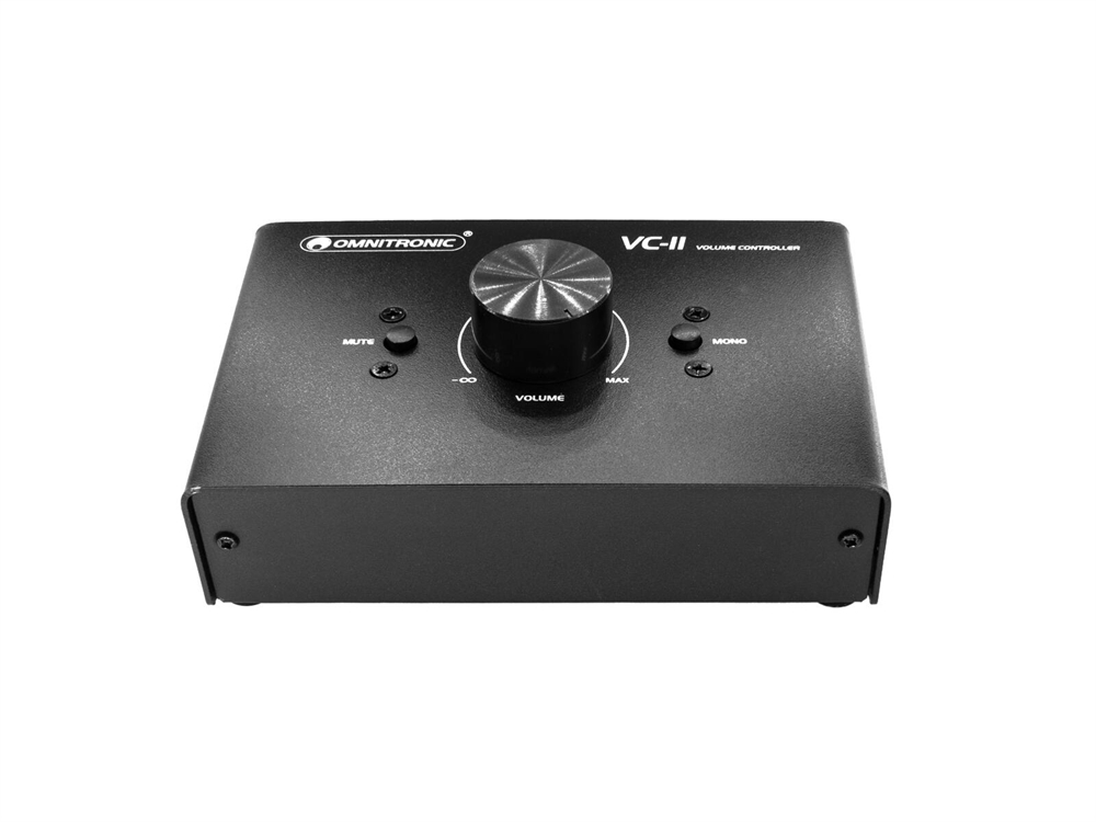 Her er du: Disconetto » brand » Omnitronic OMNITRONIC VC-11 Volume Controller, passive På lager På lager, 3-5 hverdage Bedømmelse for OMNITRONIC VC-11 Volume Controller, passiveProduktet er endnu ikke bedømt 309,00DKK ved 1 stk. Vis uden moms Trustpilot Passive monitor controller with mute and mono summation OMNITRONIC VC-11 Volume Controller, passive Passive monitor controller with mute and mono summationPrecise volume control of analog audio signalsSuitable e.g. between PC sound card and active speakers or amplifiersLarge rotary level controlPassive, requires no power supplyDesktop console housingPackage contents1 x device IP classification:IP20Frequency range:20 - 20000 HzHousing color:Black matteConnections:Input: line via 2 x 3-pin XLR/6.35mm jack (F) combination socket (mounting version)Input: line via 1 x 3.5 mm jack (stereo) mounting versionOutput: line via 2 x 6.3 mm jack socket (mono) mounting versionOutput: line via 1 x 3.5 mm jack (stereo) mounting versionChannels:Input chanel: 1 x mono + stereo via XLR or jack, stereo/mono switch, mute controlMaster output: 1 x mono + stereo via jack, channel control via rotary dialHousing design:Desktop console housingDimensions:Width: 16 cmDepth: 10,8 cmHeight: 6,3 cmWeight:0,510 kg Varenr.: E-10355796