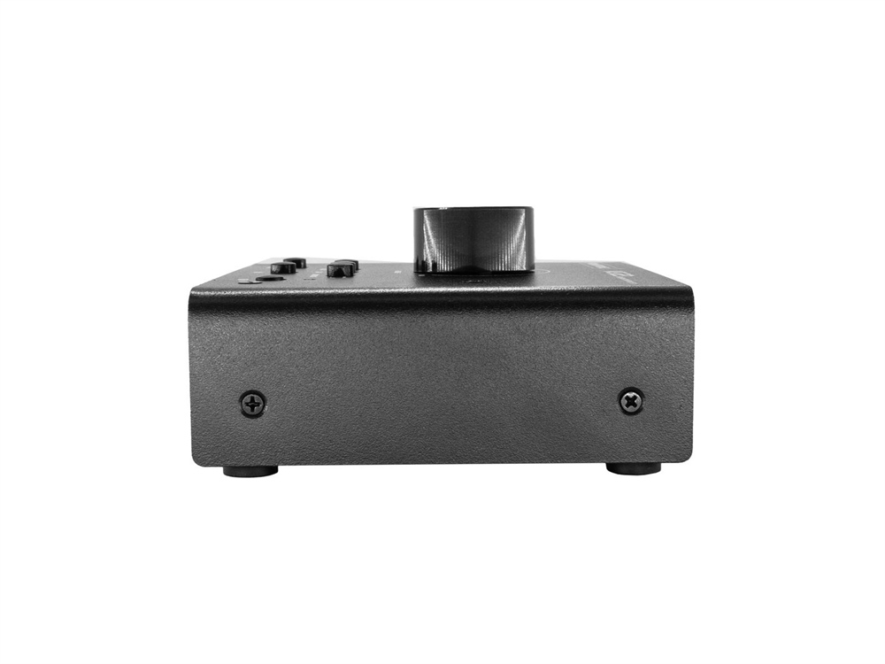 | Channels: | Input chanel: 1 x mono + stereo with line-line switch via jack plug or Bluetooth Master output: 1 x mono + stereo via jack, channel control via rotary dial, mute control, stereo/mono switch, level attenuator, speaker selector |