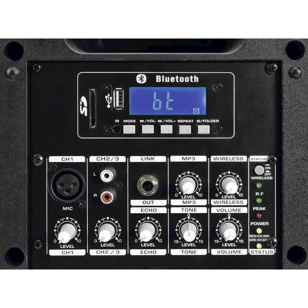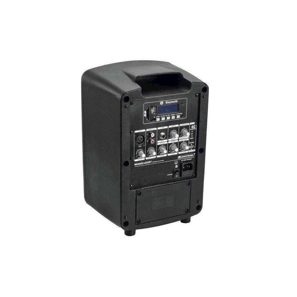 Her er du: Disconetto » LYD » Højttalere » Højttaler med Batteri / Trådløse Omnitronic WAMS-65BT trådløs højttaler På lager På lager, 3-5 hverdage Bedømmelse for Omnitronic WAMS-65BT trådløs højttalerProduktet er endnu ikke bedømt 1.359,00DKK ved 1 stk. Vis uden moms Trustpilot Portable PA system with UHF receiver unit, audio player, Bluetooth and 40 W RMS Portable 6.5" PA with UHF receiver unit, audio player, Bluetooth and 40 W RMSCompact, all-in-one PA system for mobile useIdeal for mains independent and wireless applications, e.g. at sales events, lectures and gyms4-channel power mixer with 40 watts power2-way bass-reflex system with 16 cm woofer (6.5")Power-efficient and battery-saving class D amplifierMP3 player with Bluetooth receiver and IR remote controlSD card slot and USB inputStream music wirelessly from your mobile devices (e.g. smartphone, tablet) via BluetoothUHF receiver unit and matching wireless microphoneMains operation or battery operation for up to 4 hours of music playingIntegrated automatic charging of the batteryRechargeable battery optionally available (E0055612)1 microphone input (XLR) with adjustable reverb effect1 line input (RCA)Tone control and master controlLink output for the combination of several amplifier systemsLight-weight black plastic enclosure with metal grille and carrying handleOperation of the hand-held microphone via 2 x AA batteries (not included)Flange for speaker stand installation etc.License-free and approved in the EUOn/off/mute-switch: Yes Power supply:100-240 V AC, 50/60 Hzor 12 V DC via rechargeable batteryRec. battery (accessory):12 V DC, 2900 mAhBattery operation:4 hoursRecharging time:4-6 hoursPower output:40 WSpeakers:16 cm subwoofer (6.5"), 2.5 cm tweeter (1")Inputs:mic (XLR), line (stereo RCA)Output:line (6.3 mm jack)T.H.D.:<0.5 %Reception module:865 MHzRange:approx. 30 mAudio player:Bluetooth, USB devices and SD(HC) cardsDimensions (L x W x H):218 x 235 x 348 mmWeight:4 kgPower consumption:60 WSize of woofer:17 cm (6.5")Frequency range:62 - 18000 HzHeight:34,8 cmDepths:21,8 cmWidth:23,5 cm Varenr.: E-13107003 Vi anbefaler OMNITRONIC MCK-30 Microphone clamp flexible DKK 34,00 Mikrofon med stativ, kabel & taske. Komplet sæt DKK 409,00349,00 Omnitronic M-60 Dynamisk mikrofon til sang DKK 309,00 OMNITRONIC Mikrofon vindhætte sort, d=40-50 mm DKK 34,00 OMNITRONIC Mikrofon vindhætter 5 stk. i farver DKK 79,00 OMNITRONIC WAMS-65BT Bodypack Transmitter incl. Headset DKK 339,00 Omnitronic WAMS-65BT trådløs mikrofon DKK 199,00 OMNITRONIC WAMS-65BT Speaker Carry Bag DKK 259,00 IEC LOCK IEC Power Cable locking 3x1.0 1m bk DKK 79,00