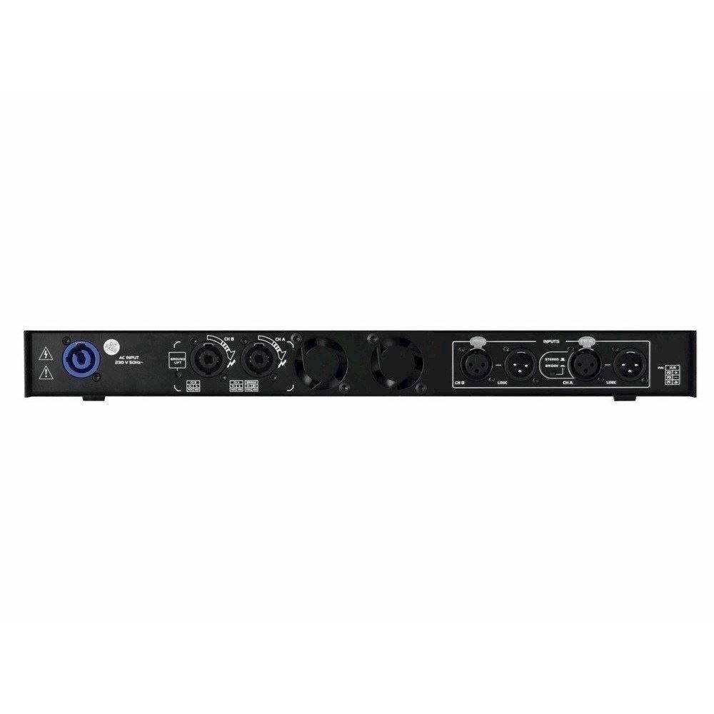| Control elements: | power switch, level control per channel, mode switch (stereo/bridged), ground lift switch |