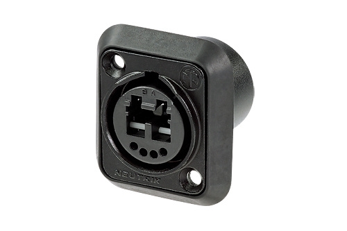 Chassis-gennemføring, skal monteres forfra, sort krombelægning. Fugtsikret til IP65 når monteret med SCDP-xx (ekstraudstyr)