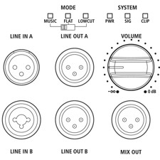 | Inputs | 1 x comb. XLR/6.3 mm: line 1 x XLR: line |