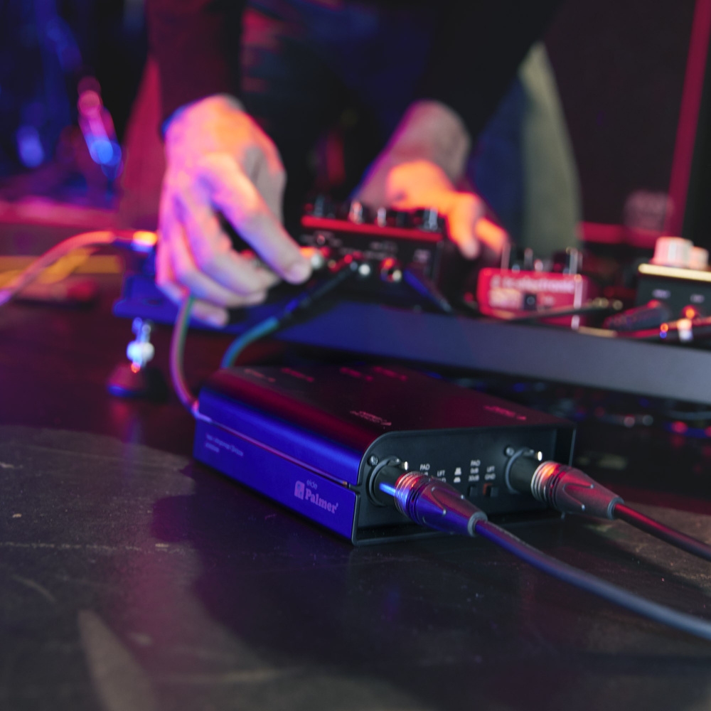 The Palmer elde is a high-quality two-channel di-box that is extremely easy to use. Due to its passive design, it requires neither batteries nor phantom power. This makes it extremely reliable and failure-proof. With its robust aluminium/steel housing, the Palmer elde easily withstands rough everyday use on stage, and with its clean, unaltered sound, it also excels perfectly in the recording studio.