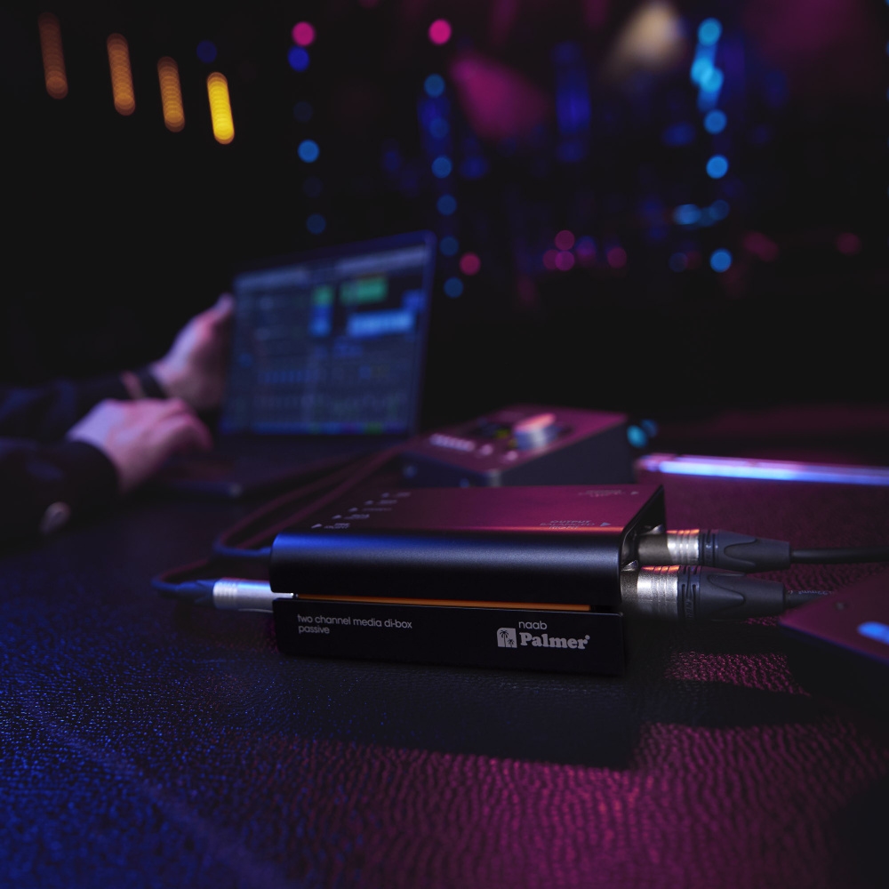If you connect a laptop to a sound system, in many cases the sound quality leaves a lot to be desired. It hums and crackles, sometimes there is also a loss of sound in the low and high frequencies. The Palmer naab, a two-channel media DI box, provides a reliable solution for this situation.