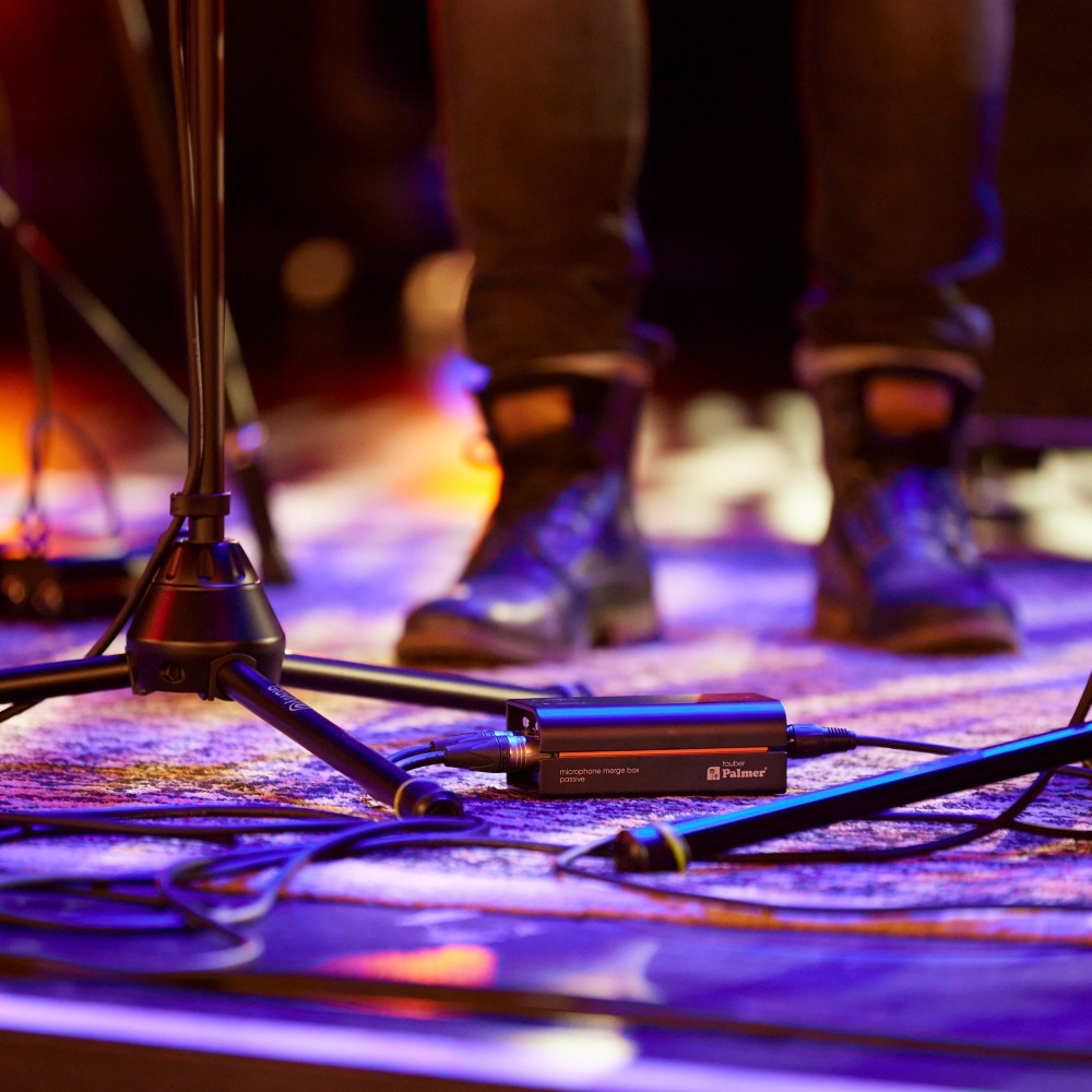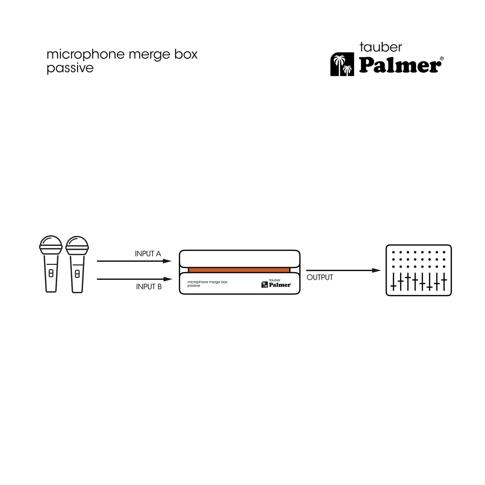 This problem has existed for as long as there have been PA systems! The Palmer tauber Microphone Merge Box solves the problem in a simple way. It has two balanced microphone inputs that are summed via a resistor matrix to a balanced mono signal which is routed to a single XLR output. It's as easy as it sounds!