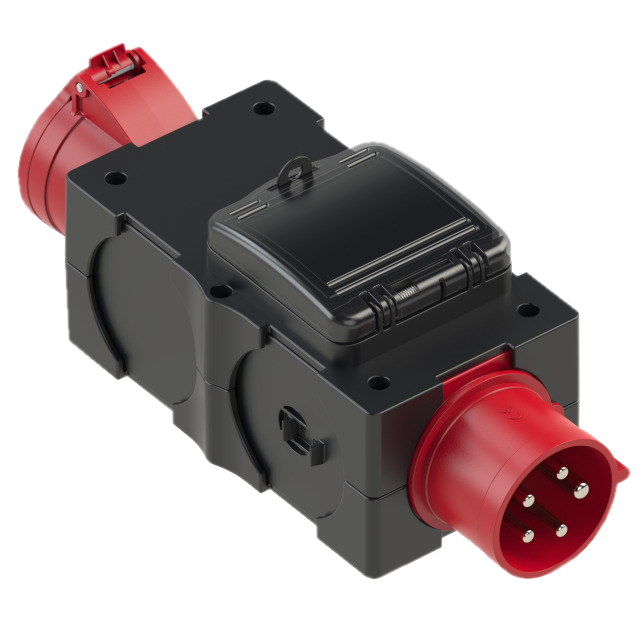 Denne strømadapter med CEE stik 32A (han) til CEE sokkel 16A (hun) er vandtæt IP44 og har en 16A 3p C minikredsløbsafbryder (MCB) fra Eaton. Denne adapter giver dig mulighed for sikkert at tilslutte en Schuko distributionsboks til en 32 A strømkilde, da 16 A kredsløbsafbryderen beskytter mod overstrøm.