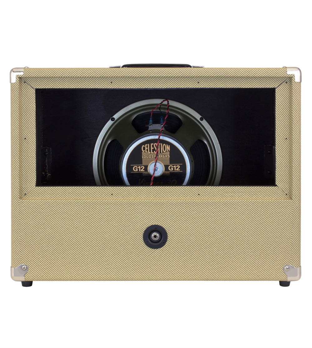 No matter how good your amp is, the speaker cabinet must also be top quality to have a great tone. The Peavey 112-C has 18mm plywood construction and a premium Celestion Vintage 30 speaker. The back of the cabinet is convertible for changing the cabinet to an open back configuration. The white piping gives the black grill and black tolex a nice finished look. Rubber feet and metal corners complete the package. Great quality, great look, great tone and great value!