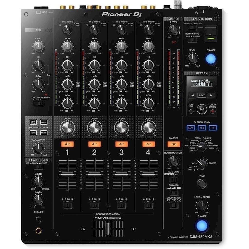 Pioneer DJM-750MK2, en 4-kanals mixer som har arvet nøglefunktioner og designelementer fra DJM-900NXS2 og er et perfekt match med f.eks. CDJ-3000 eller XDJ-700.