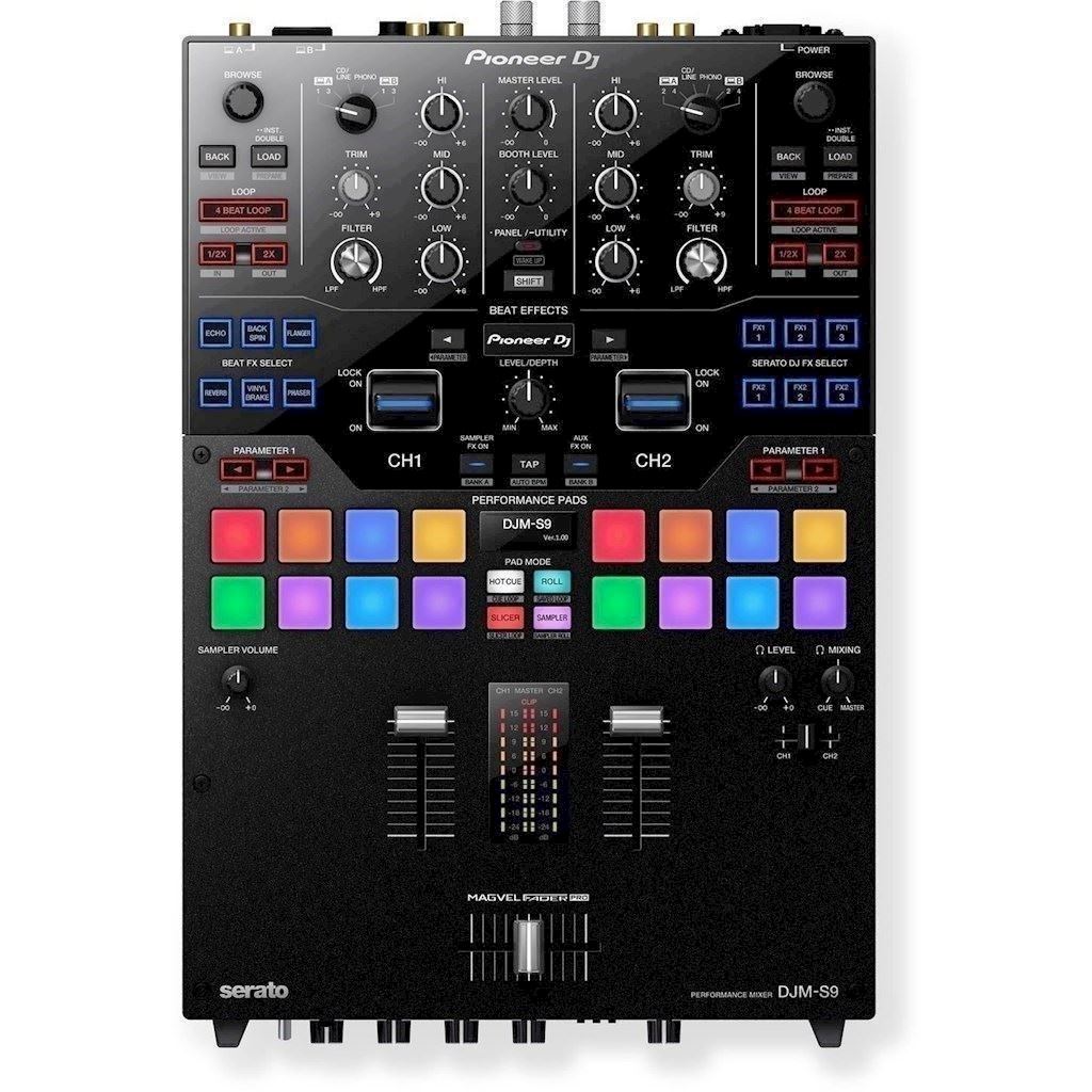 Her er du: Disconetto » Brands » Pioneer Dj Pioneer DJM-S9. DJ-battlemixer med Serato Ikke på lager Kontakt os Bedømmelse for Pioneer DJM-S9. DJ-battlemixer med SeratoProduktet er endnu ikke bedømt Indhent tilbud.Vis uden moms Trustpilot Den ultimative 2-kanals DJ-battlemixer fra Pioneer i samarbejde med Serato. Mulighed for tilslutning af to individuelle laptop-opsætninger samtidig. LEAN AND MEAN Meet the DJM-S9, our first two-channel battle mixer for Serato DJ. With a fully configurable Magvel Pro crossfader and customisable FX buttons and pads, you can tailor the mixer to suit your DJing style. The tough DJM-S9 is build to withstand the most energetic scratch performances, and it boasts high-quality audio circuitry inherited from our flagship 4-channel digital mixer, the DJM-2000NXS. Main Features MIDI Control Full assignable MIDI controls Auto Standby Yes DVS Control Serato DVS enabled rekordbox dj ready Software System Requirements Windows 8.1/7 (CPU) Core i3, i5 or i7 1.07 GHz, (Memory) 4GB Mac OS X 10.10/10.9/10.8 (CPU) Core i3, i5 or i7 1.07 GHz, (Memory) 4GB Display Resolution 1280 x 720 or higher For more information click here Specifications Width 267 mm Height 107.9 mm Depth 407.3 mm Weight 4.6 kg Rack Mount Yes Frequency Range 20 - 20000 Hz S/N Ratio USB 107 dB Distortion < 0.005 % (USB) Master Level Meter Size 9 segment Channels EQ/ISO 3 band EQ/ISO Range -∞ ~ +6 dB Reverse Channels Yes Level Meter Type Individual Peak Limiter Yes Performance Control Channels 2 Sound Color FX Dub Echo Filter Noise Pitch Wide Filter Beat FX Back Spin Delay Echo Fader Synth Saw Fader Synth Sine Fader Synth Square Flanger HP Filter LP Filter Phaser Reverb Roll Spiral Trans Vinyl Brake Serato DJ FX powered by iZotope Yes Effect/Sampler 3-Band Isolator Yes Auto BPM Counter Yes Crossfader Crossfader Type Magvel Fader Pro CURVE Assignable Yes Reverse Crossfader Yes Tension Adjustment Yes Mic Mic Connection XLR / 1/4-inch Jack Combo Talkover ON/OFF Button Talkover Attenuator Yes Sound card Connection USB Sample Rate 24 bit Frequency 48 kHz Terminals Inputs 2 CD/LINE (RCA) 2 PHONO (RCA) 1 MIC (XLR/Jack Combo) 1 AUX (RCA) USB 2 USB B ports Outputs 2 MASTER (XLR, RCA) 1 BOOTH (1/4 inch Jack) 2 HEADPHONE MONITOR (1/4 inch Jack, mini-jack) Varenr.: PI DJM-S9