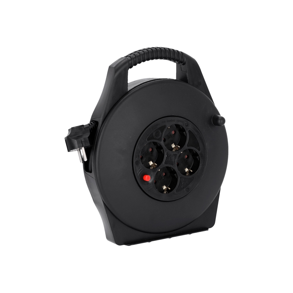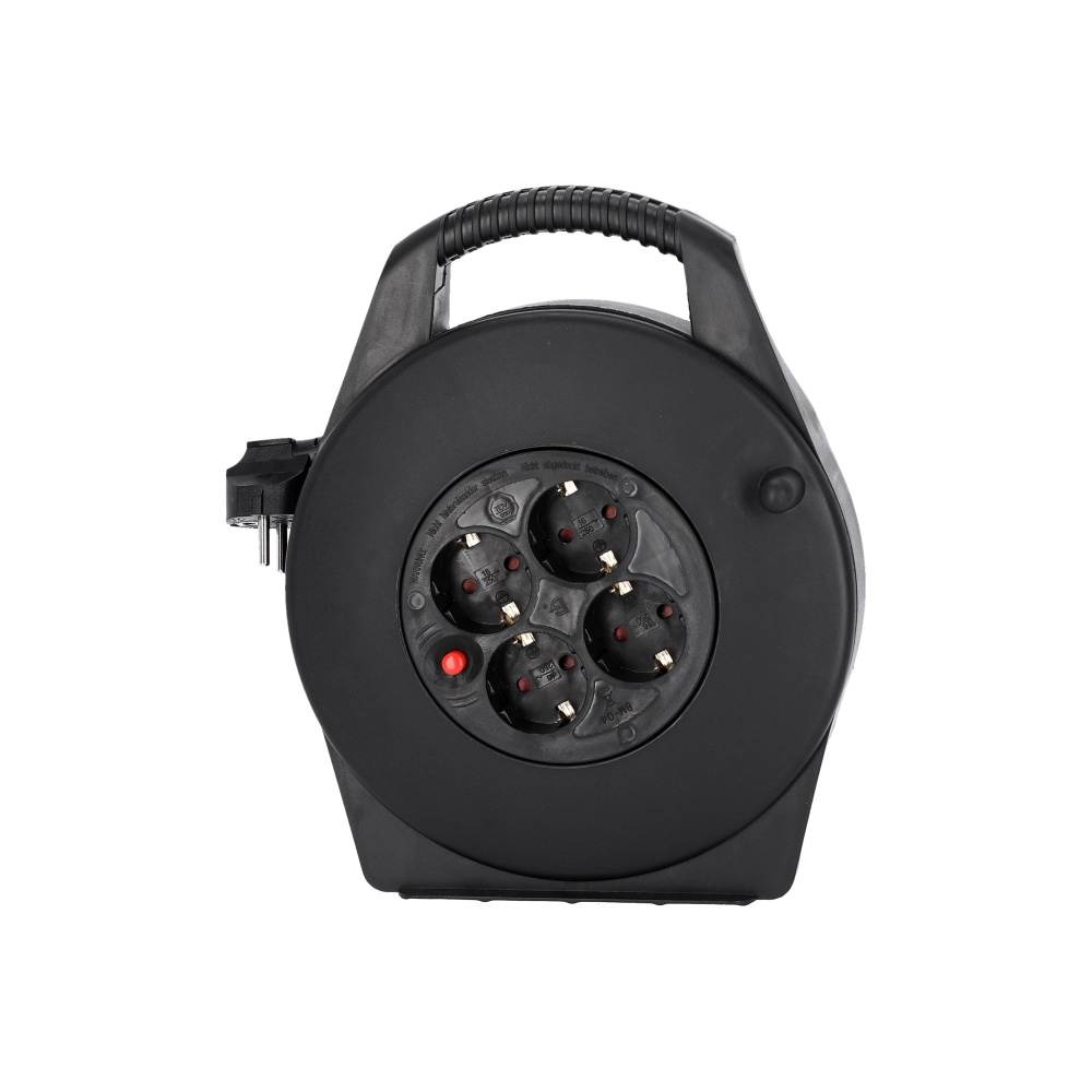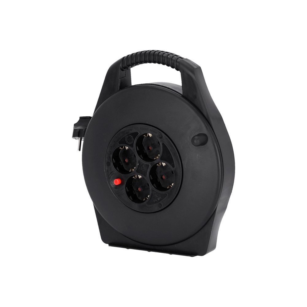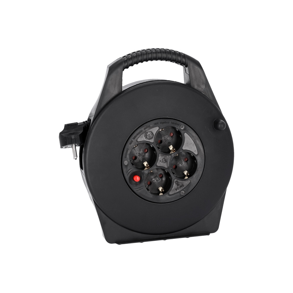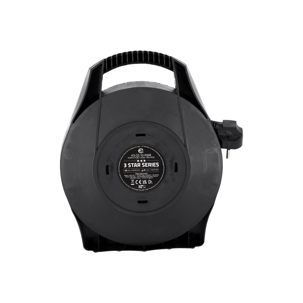 This small and handy cable drum is assembled with 10 m power cable with a jacket made of PVC (H05VV-F), and comes with 3 x 1.5 mm² inner conductor cross-section. The ergonomic handle and the overall weight of only 1.5 kg, such as the solid drum body make this little friend a good companion in your daily life.