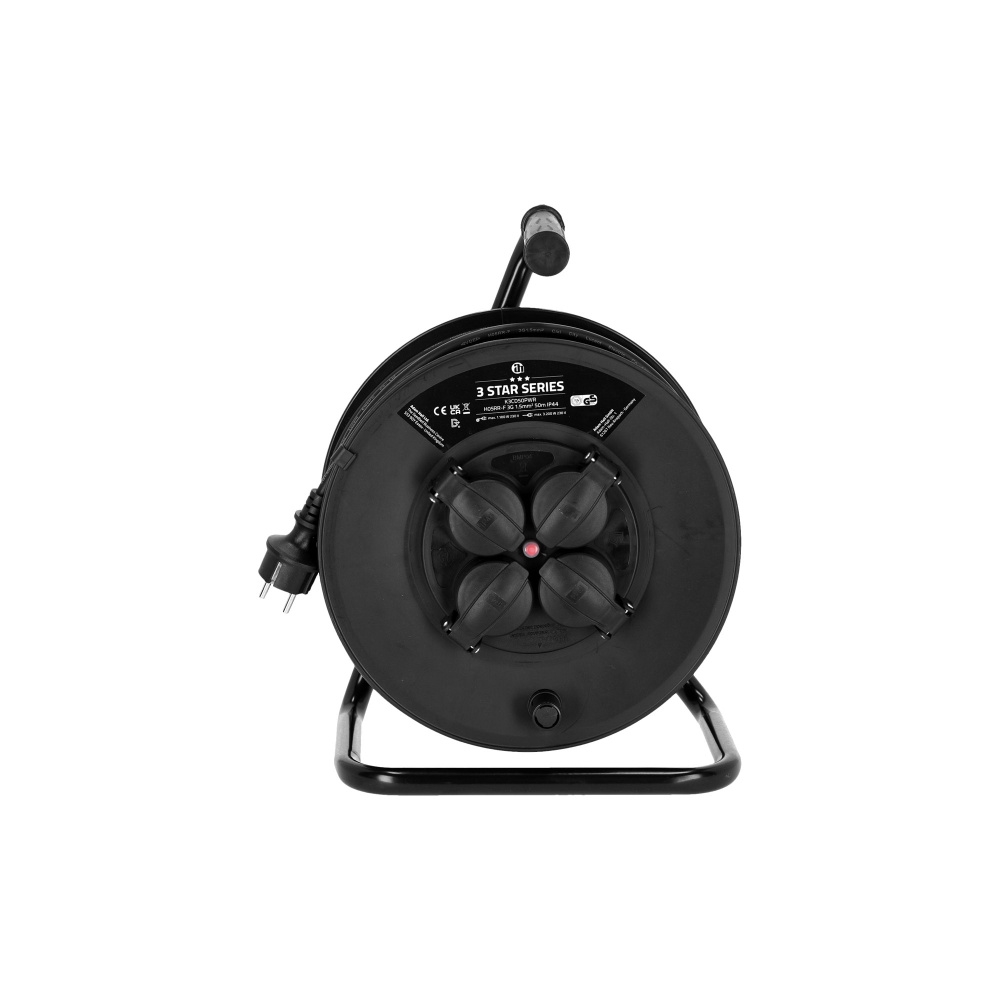Our power cable drums are assembled with a professional power cable and jacket made of rubber (H05RR-F) and also with a 3 x 1.5 mm² inner conductor cross-section. The four IP44 sockets are protected against water-spray and foreign objects such as sand f.e. The integrated overheat protection guarantees a quick swith off. This item is availabel in 25 m and 50 m.