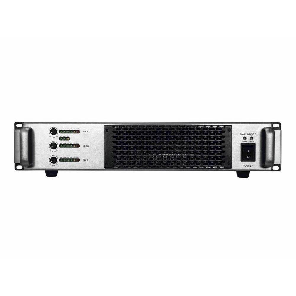 The A-3603 produces enough power to supply large speaker system with up to a maximum of 3600 watts, 4 ohms (2000 W sub and 2 x 800 W tops). Enough potential you can use in clubs, lounges, restaurants, dancing schools and fitness studios and the like.
