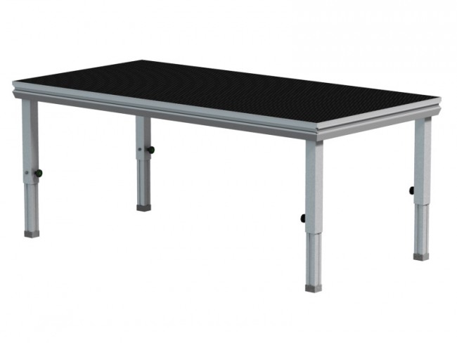 Praktisk scenepodie, der kan monteres med ben i højde 20, 40, 60, 80 eller 100 cm - alt efter ønske. Kan også bruges med variable ben.