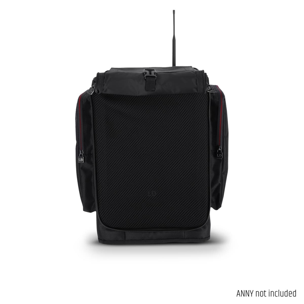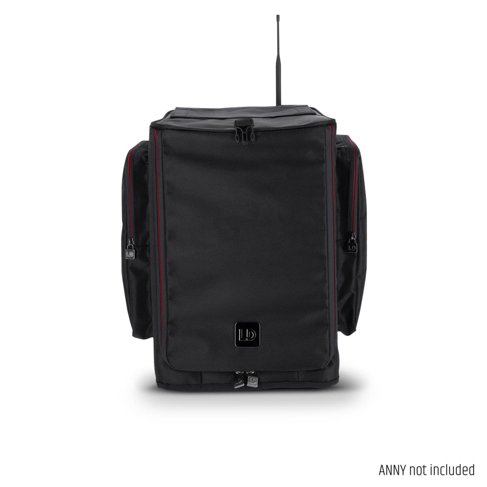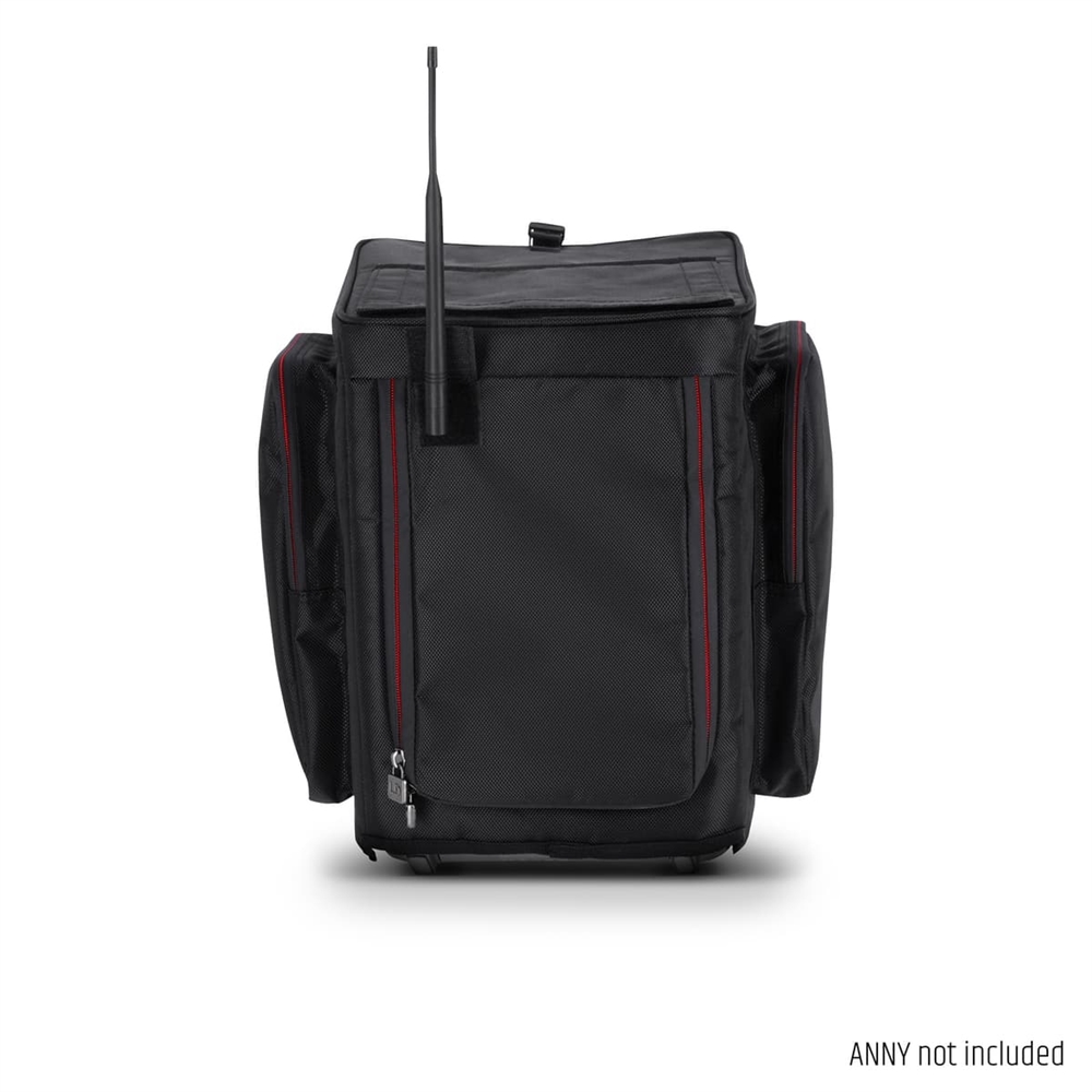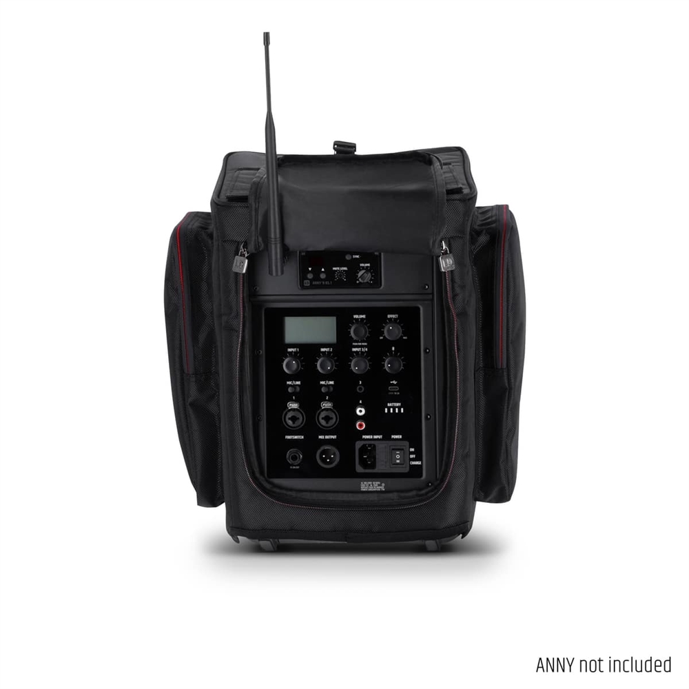 Multiple Velcro and zip openings and a large roll-up front allow full use of the ANNY® 8 with the protective cover in place. Two outer pockets on the sides of the protective cover offer plenty of space for stowing accessories such as microphones, batteries, mains and XLR cables.