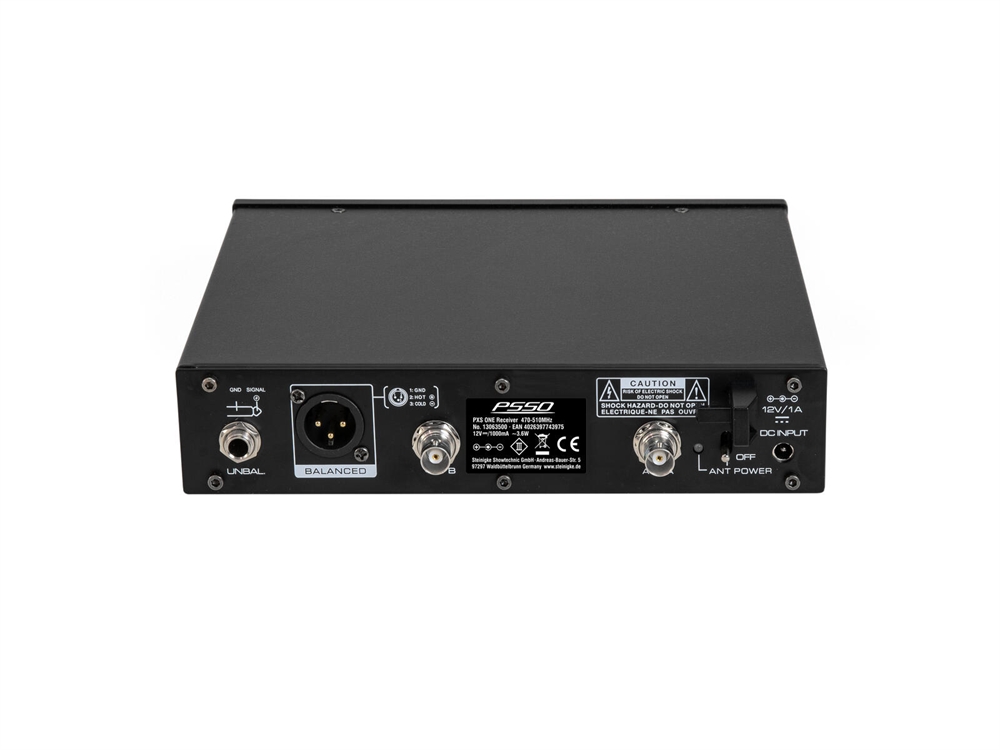 | Connections: | Input: antenna via 2 x BNC (F) 11,54 V Output: microphone via 1 x 6.3 mm plug (unbal.) Output: microphone via 1 x 3-pin XLR (M) mounting version |