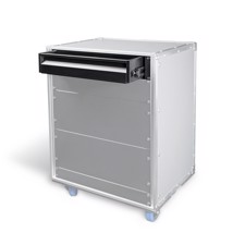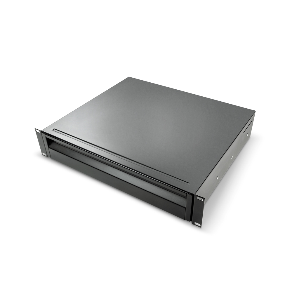 The ERGO is a very affordable rackmount drawer with heavy-duty 1.5 mm steel construction and easy, ergonomic operation. It integrates a recessed pull handle that runs the width of the drawer and a convenient push-to-close, pull-to-open latching mechanism with 1,5 kg pull force. This economy rack drawer has a black semi-gloss powder coating finish and 20 kg load capacity. It features smooth-running full extension ball bearing slides with front disconnect for easy drawer removal.