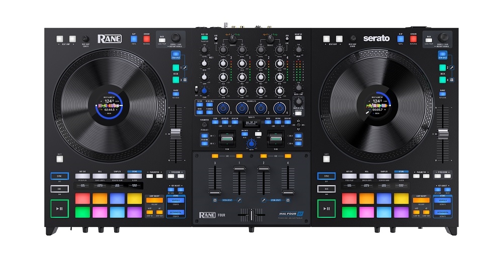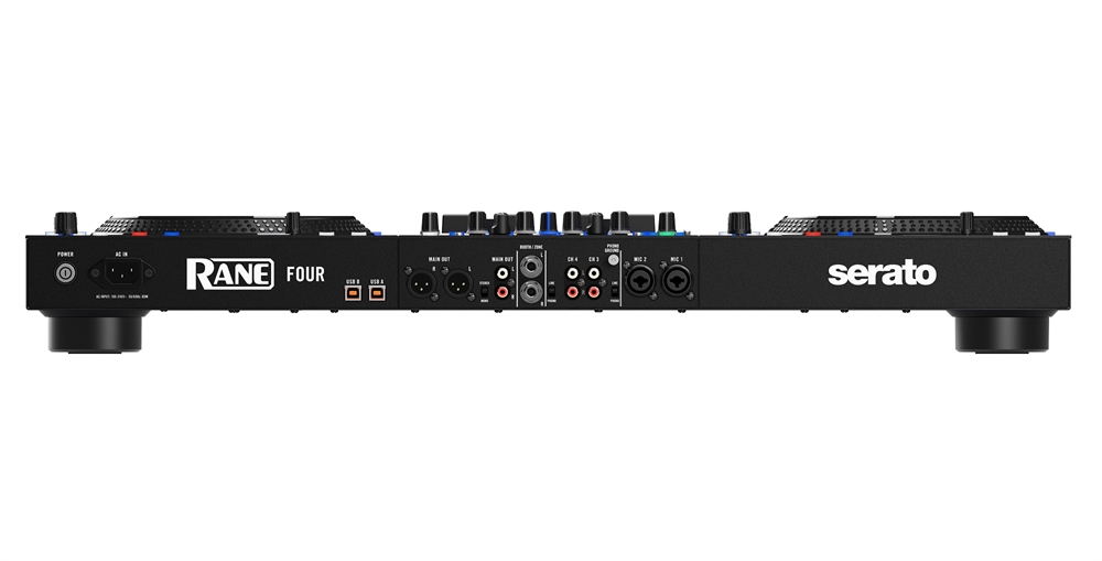 Rane Four er udstyret med fire stereo-kanaler, hver med fuld EQ-kontrol, intuitiv effekt-aktivering, udvidet Sampler-routing og Quick Access Deck Selection pr. jog-hjul. Der er to eksterne Line/Phono-indgange til pladespillere, CD-decks eller andre kilder.