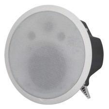 Compact design, light weight and limited depth makes the MQ 50C a 2-way ceiling speakers ideal for use in any background and foreground music system where a good sound is required. The woofer is a high-excursion, PP coated paper cone with rubber surround design mounted in a tuned enclosure. The fabric dome tweeter is loaded on a constant Q wave guide to provide natural and smooth sound reproduction on a wide dispersion angle. Installation of MQ 50C is fast and efficient thanks to the built-in rotating hooks. No additional brackets or rings or other supports are required: thanks to its lightweight construction the speaker can be mounted as a conventional ceiling speakers. Connections are made on four poles Euroblock connector. Power value can be selected with a rotary switch, accessible behind the grill.