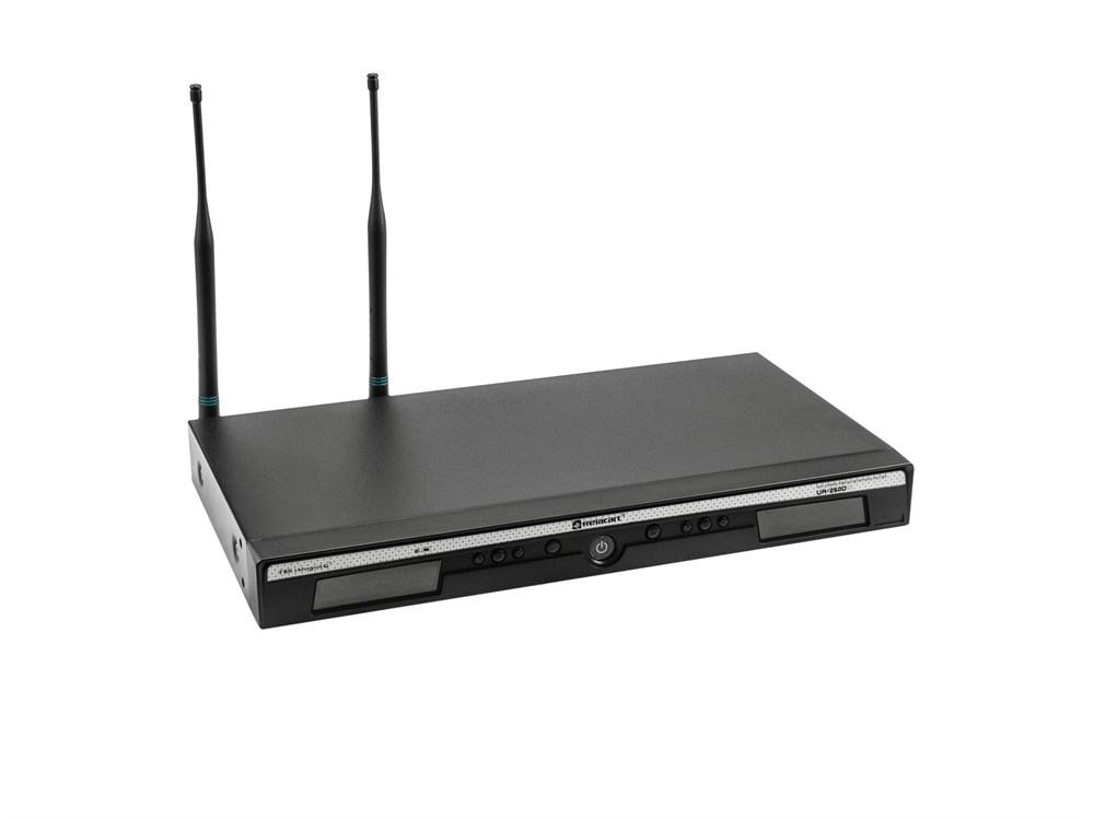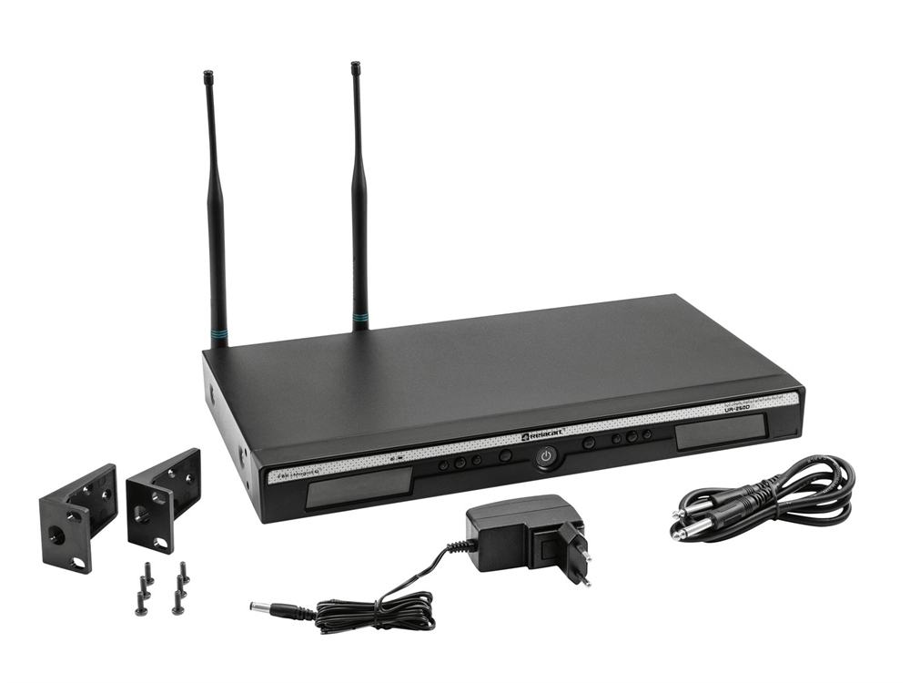 | Connections: | Antenna via 2 x BNC (F) 8 V Output: Microphone via 2 x 3-pin XLR (M) mounting version Output: line via 1 x 6.3 mm plug (unbal.) |