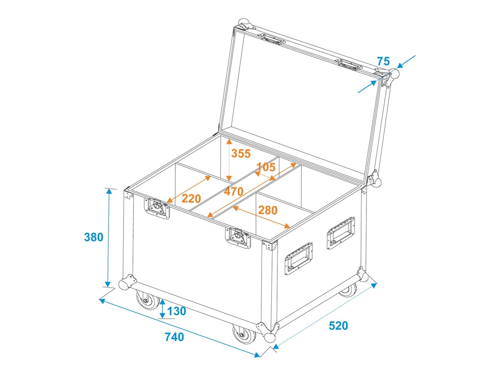 Her er du: Disconetto » Flightcase » Flightcases » Special Cases ROADINGER Flightcase 4x LED Theatre COB 200 series, with wheels På lager På lager, 3-5 hverdage Bedømmelse for ROADINGER Flightcase 4x LED Theatre COB 200 series, with wheelsProduktet er endnu ikke bedømt 5.429,00DKK ved 1 stk. Vis uden moms Trustpilot ROADINGER Flightcase 4x LED Theatre COB 200 series, with wheels Transport aid: With wheelsMade in Europe Maximum load:100 kgMaterial:Birch multiplex, 6,5 mmAccessory compartment:10,3 cm x 46,8 cm x 35,5 cmDimensions:Length: 73,5 cmDepth: 51 cmHeight: 57 cmWeight:19,40 kg Varenr.: E-31005195