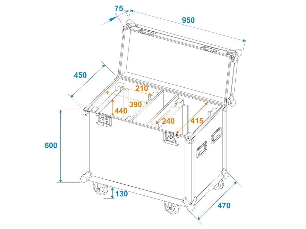 Her er du: Disconetto » brand » Roadinger ROADINGER Flightcase 2x IP TMH-H760 with wheels På lager På lager, 3-5 hverdage Bedømmelse for ROADINGER Flightcase 2x IP TMH-H760 with wheelsProduktet er endnu ikke bedømt 8.199,00DKK ved 1 stk. Vis uden moms Trustpilot Trunk case with castorsROADINGER Flightcase 2x IP TMH-H760 with wheelsDenne vare kan KUN sendes kun med fragtmand Trunk case with castorsInterior with foam paddingcover with foam paddingAluminum profile frames 30mm with rounded edges4 hinged, chromium plated case handles2 chrome tip-over locks2 high-quality butterfly locks4 castors with 2 locking brakes4 built-in stacking trays in the coverWith 2 Device compartmentsWith 1 accessory compartmentFor further information about this product, please refer to the Data Sheet under "Downloads" Maximum load:100 kgAluminum profile frames:30 mmCase handle:4 pc/pcsStop hinge:2 pc/pcsLock:Butterfly lock: 2 pc/pcsTransport aid:4 x castors with 2 locking brakes4 x built-in stacking trays in the coverMaterial:Plywood multi-layer gluedColor:Black, laminatedDevice compartment:39 cm x 42 cm x 61 cmAccessory compartment:8 cm x 42 cm x 24 cmInside dimensions:90 cm x 42 cm x 61 cmDimensions:Width: 95 cmDepth: 47 cmHeight: 80 cmWeight:28,30 kg Varenr.: E-31001068 Vi anbefaler Eurolite LED IP65 TMH-H760 Beam/Wash/Flower Movinghead DKK 20.519,00