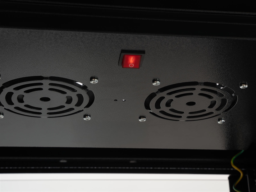 19" steel cabinet with lockable doors and fan unit