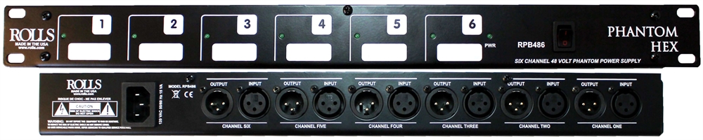 The RPB486 powers up to 6 condenser microphones with 48 volts of ultra clean phantom power. The outputs are XLR balanced for easy connection to a digital multi-track recorder. To eliminate the possibility of any DC voltages, the RPB486 features pull-down resistors and isolation capacitors on all outputs.