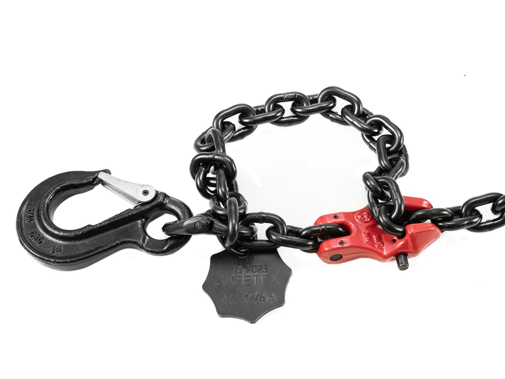 Her er du: Disconetto » Stativ, Scene & Truss » Tilbehør til Lamper og Truss » Wire / Kæde & Sjækkel SAFETEX Chain Sling 1leg with clevis shortening clutches locked 1m WLL2000kg På lager På lager, 3-5 hverdage Bedømmelse for SAFETEX Chain Sling 1leg with clevis shortening clutches locked 1m WLL2000kgProduktet er endnu ikke bedømt 1.179,00DKK ved 1 stk. Vis uden moms Trustpilot SAFETEX Chain Sling 1leg with clevis shortening clutches locked 1m WLL2000kg Quality grade: 8Made in Europe Maximum load BGV C1 (8-fold):1000 kgMax. load WLL (4-fold):2000 kgQuality grade:8Color:BlackDimensions:Length: 1 mWeight:2,80 kg Varenr.: E-50301624