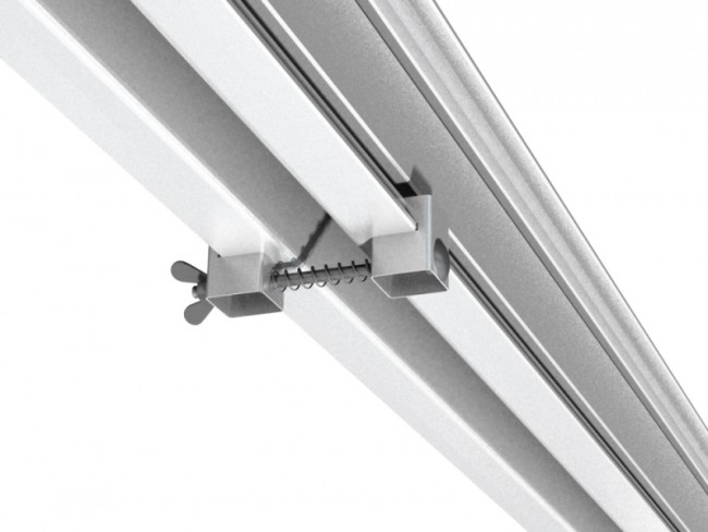 Monteres nemt under podierne, hvor de kraftige kæber griber om to podiers samling.