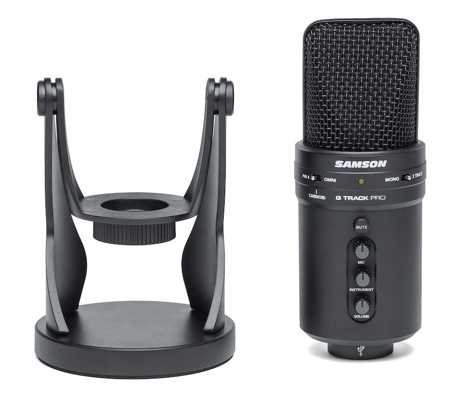 G-Track Pro includes a standard 1/4" instrument input for recording bass, guitar, keyboard and other line level devices. Singer/songwriters can quickly capture vocal and instrument performances simultaneously or podcasters can add a sub-mixer to record additional hosts and guests. A Mono / 2-Track switch allows you to record the mic and instrument on the same tracks for streaming content or on separate tracks for post production editing.