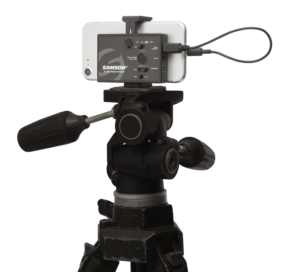 - Dual-channel receiver mounts directly to smartphones, tablets, digital cameras and tripods via