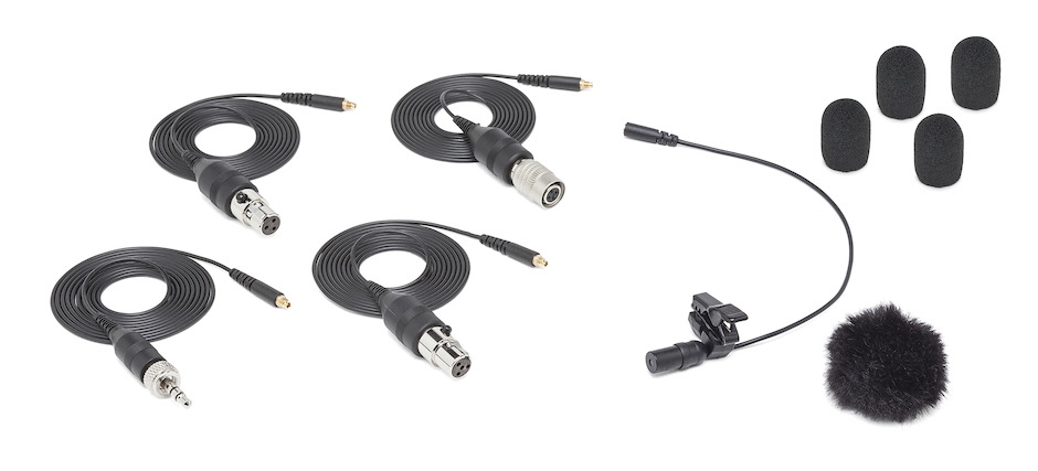 The LM8x comes with four detachable microphone cables with 1/8" (3.5mm), Hirose® 4-Pin, Switchcraft® TA3F and Switchcraft® TA4F adapters respectively. This makes the LM8x well suited for use with Samson wireless systems (TA3F), as well as most other popular wireless systems.
